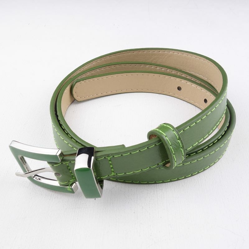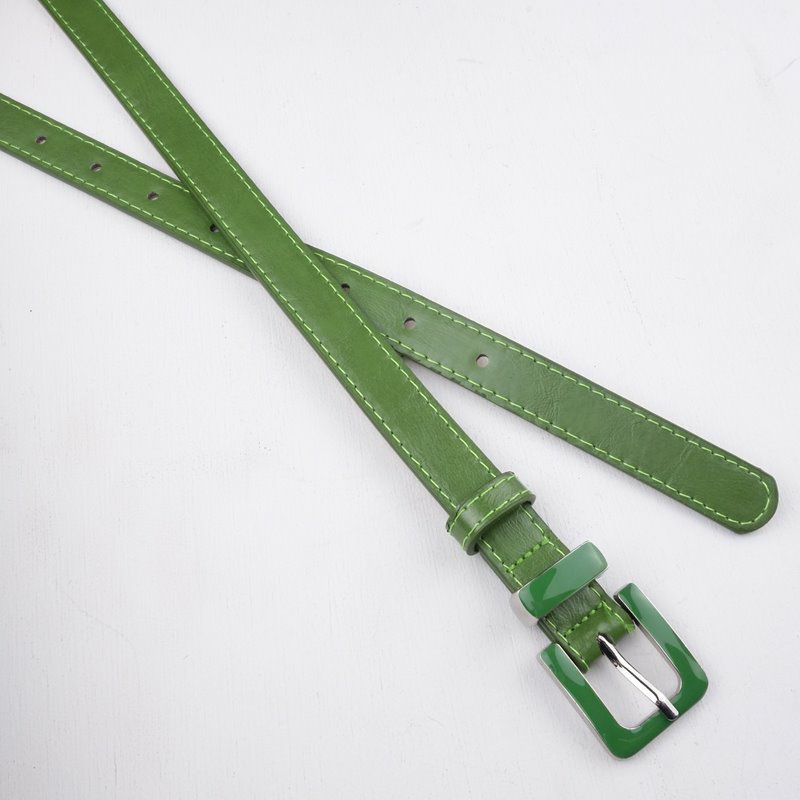 PUレザー 同系色バックル グリーン 細ベルト