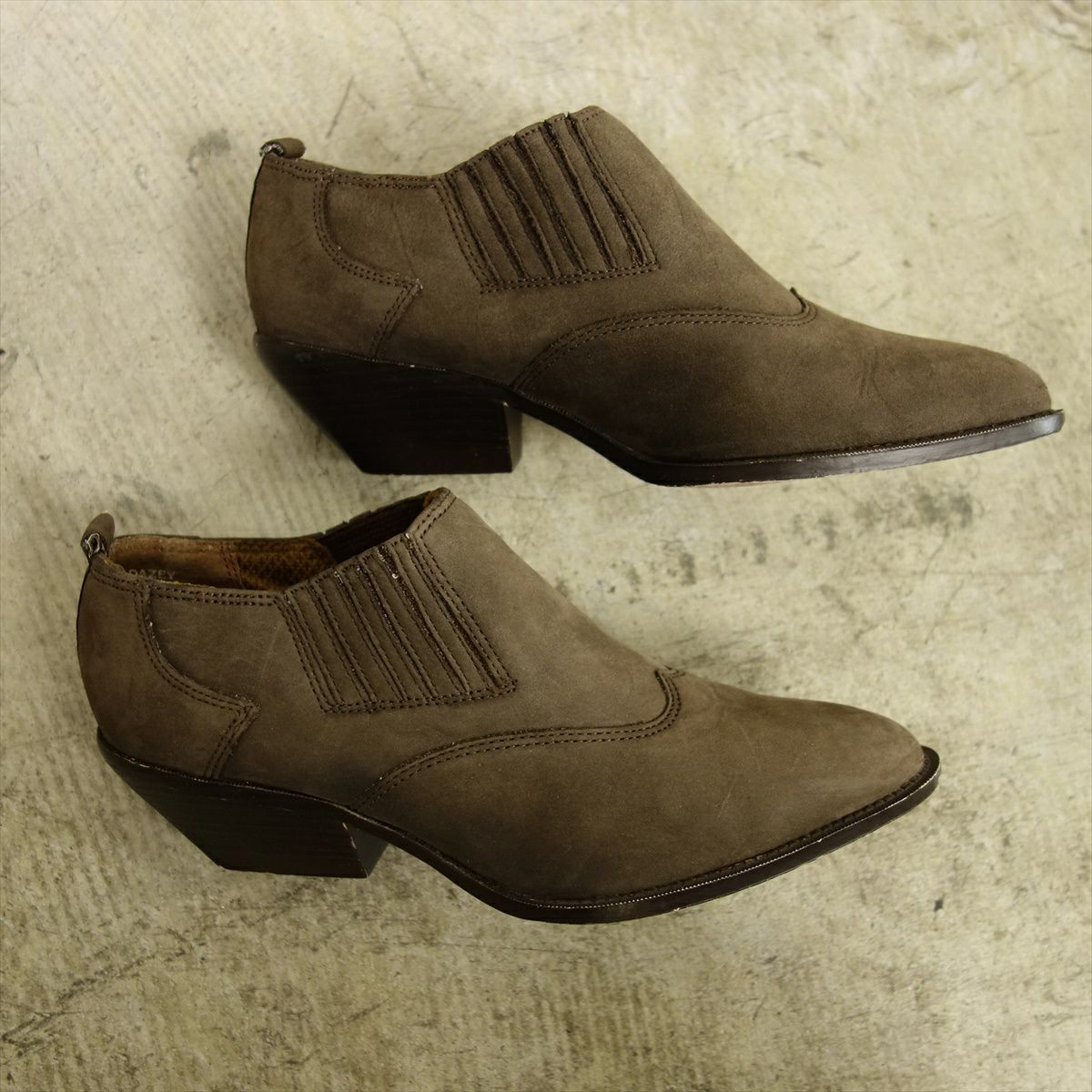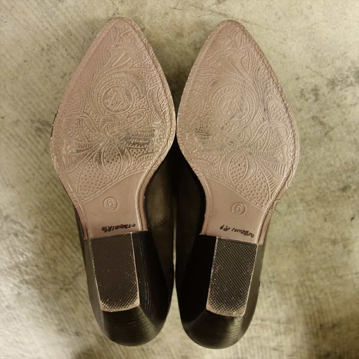 USED レザー ウエスタンデザイン ポインテッドトゥ ショートブーツ 茶 ブラウン