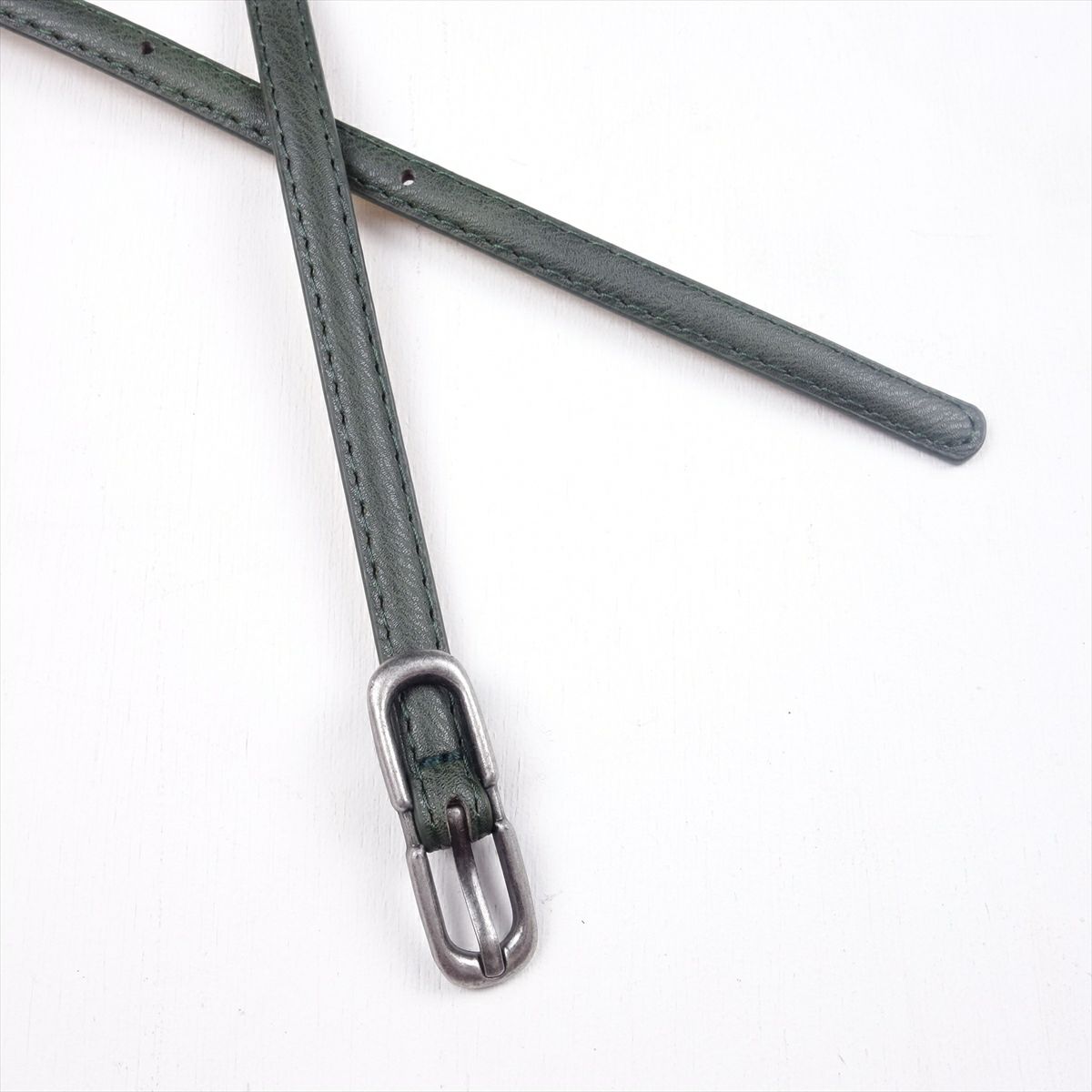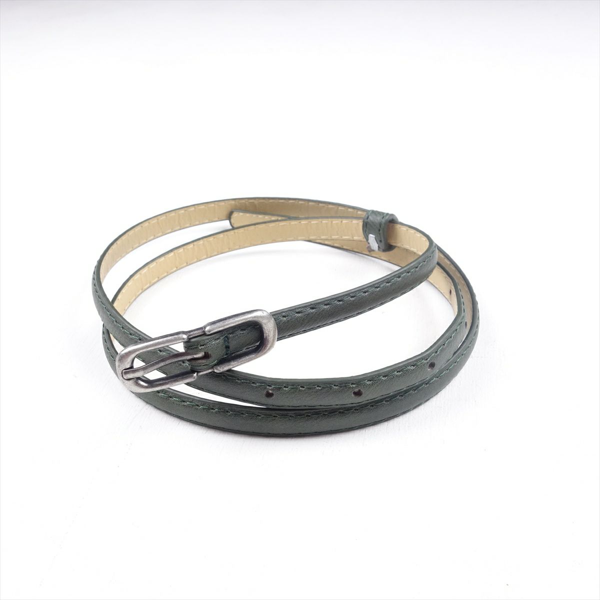 PUレザー カーキ シンプル 細ベルト