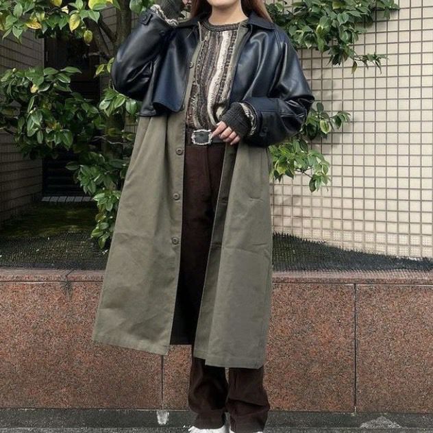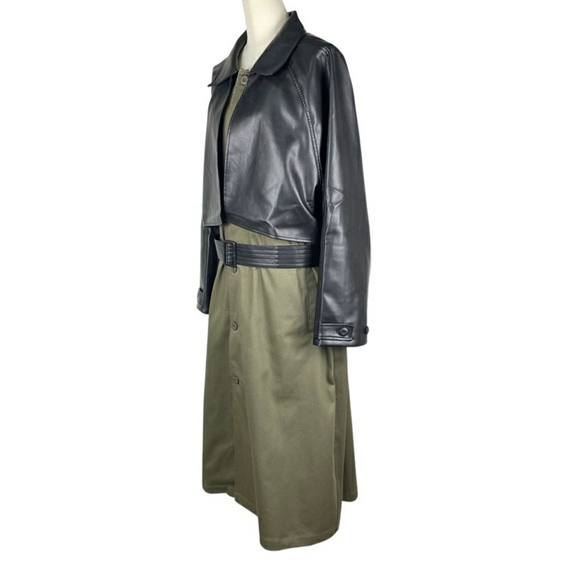 FAFATT ファファット レザー切り替えコート OLIVE