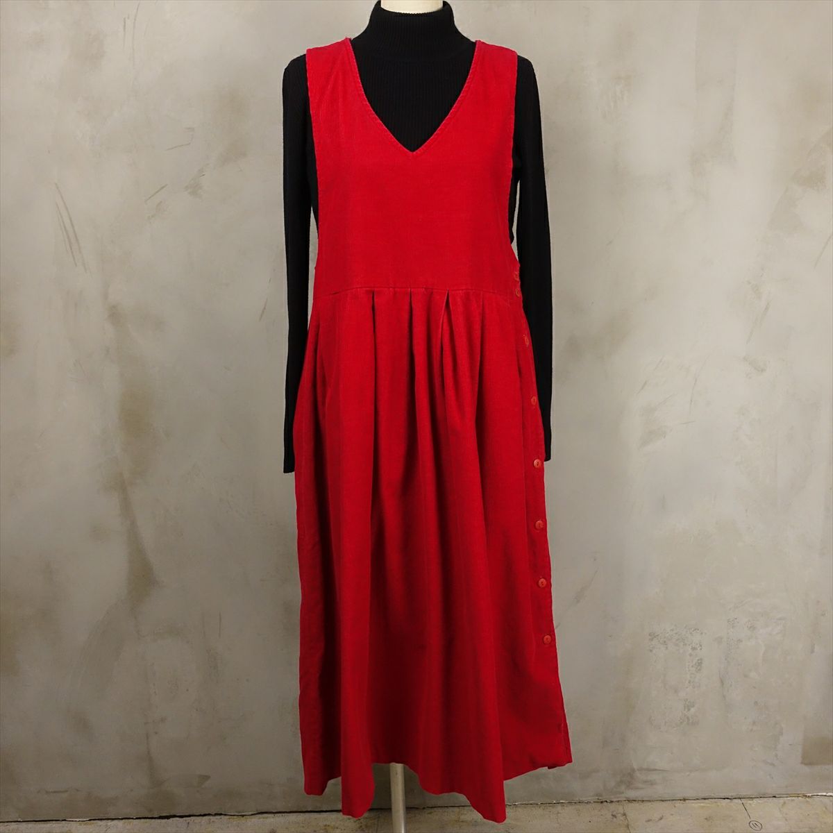 古着 Vネック コーデュロイ ノースリーブワンピース