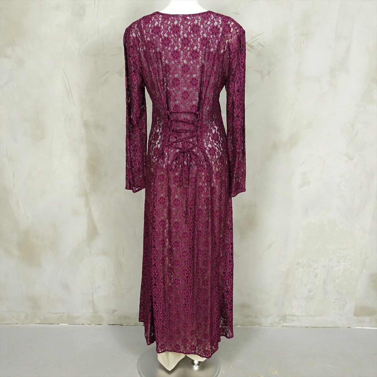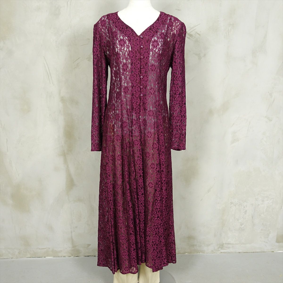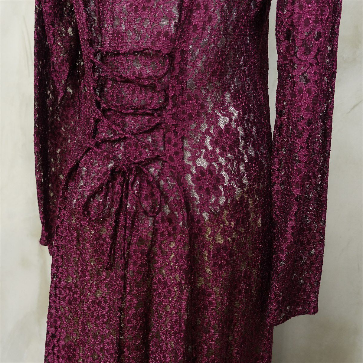 古着 総レース シースルー 長袖ワンピース