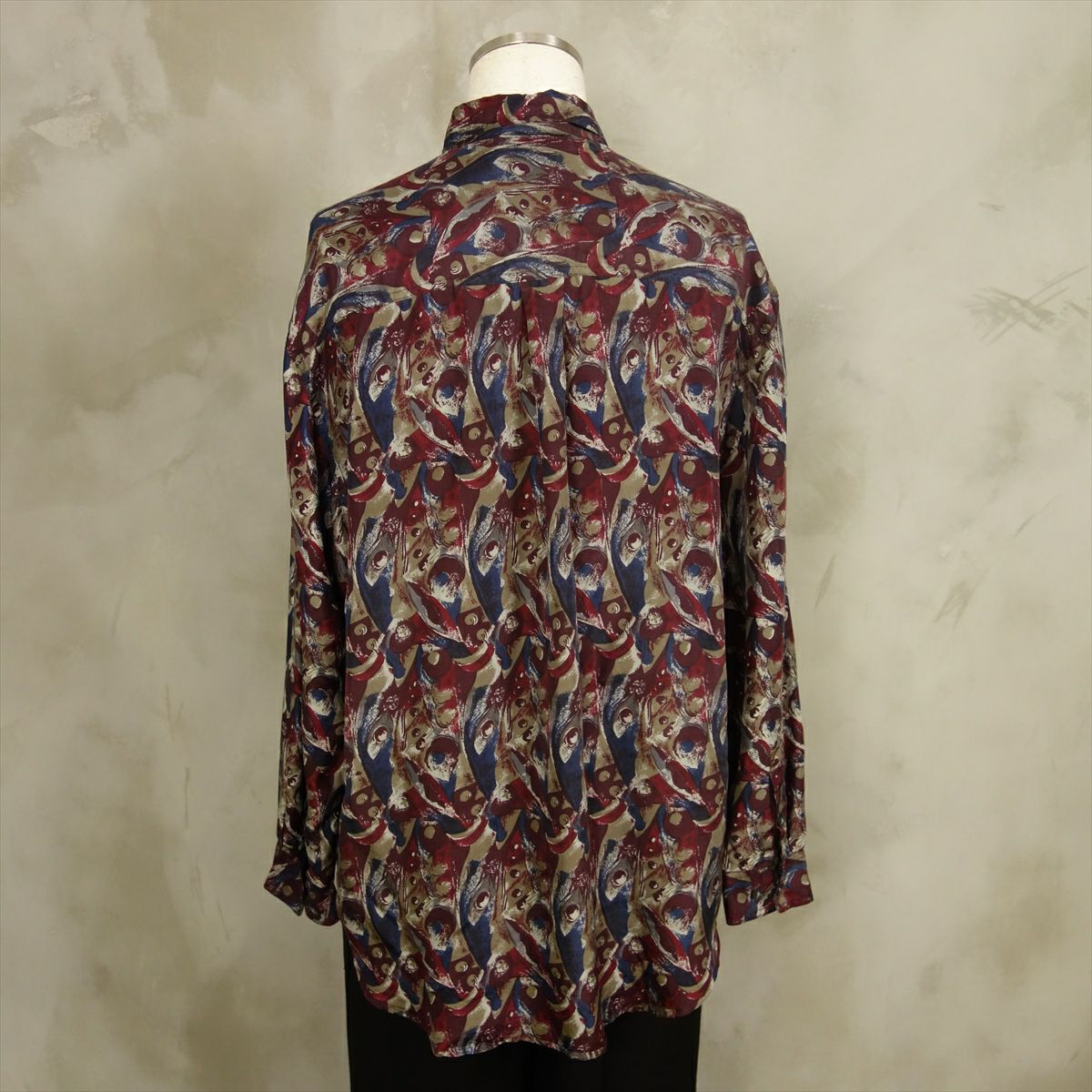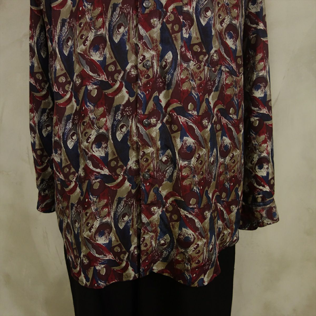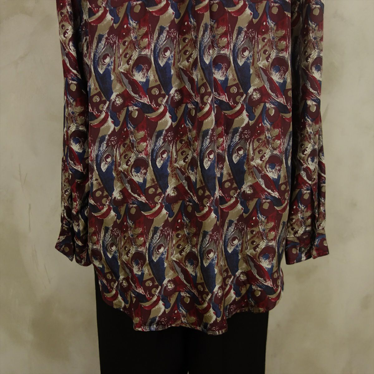 古着 総柄 シルク 長袖シャツ