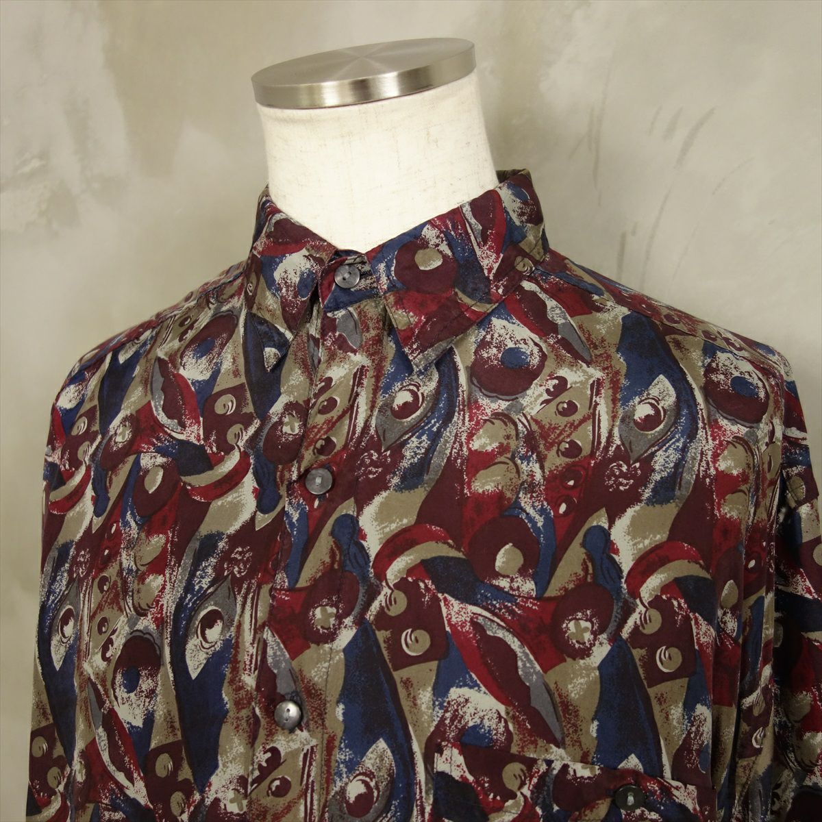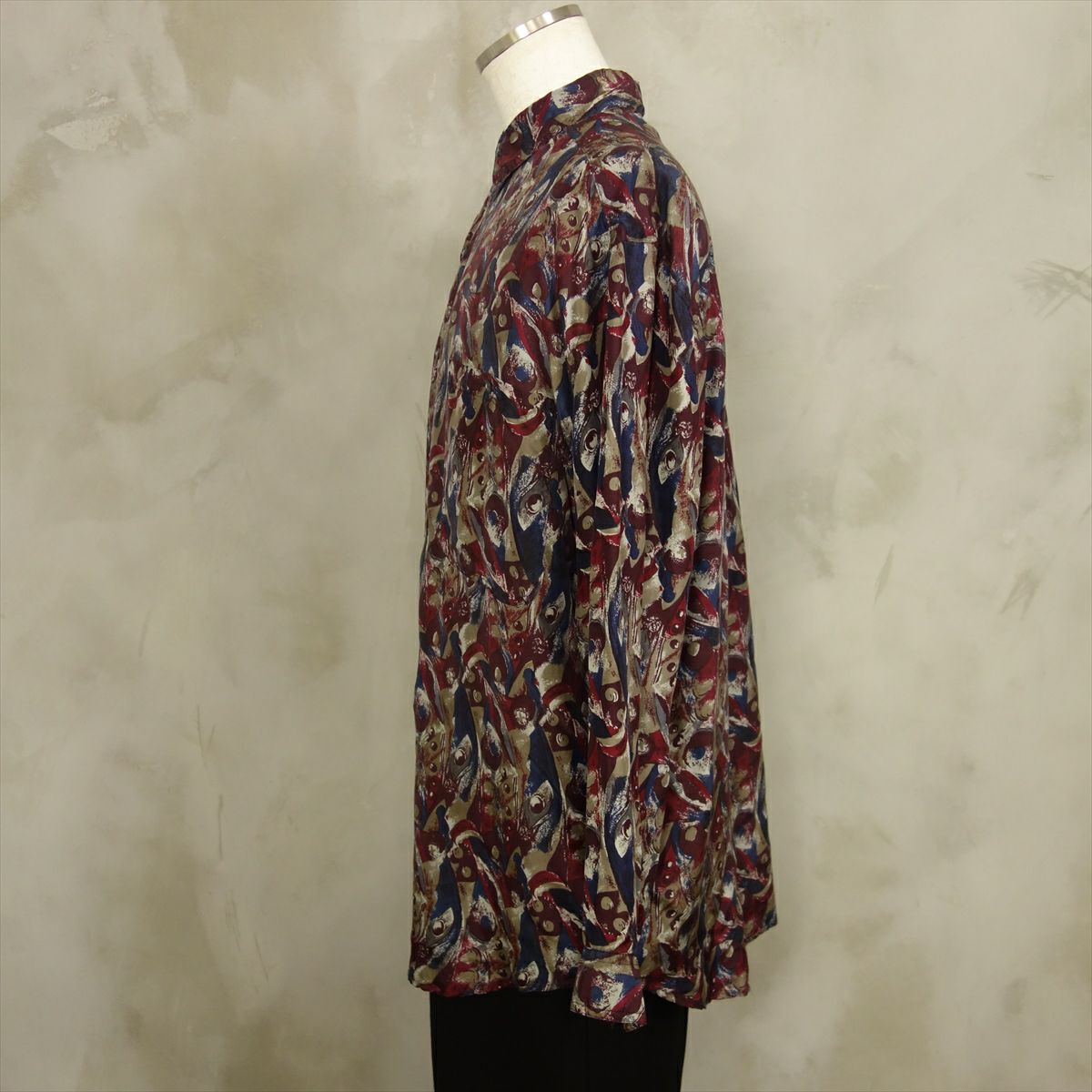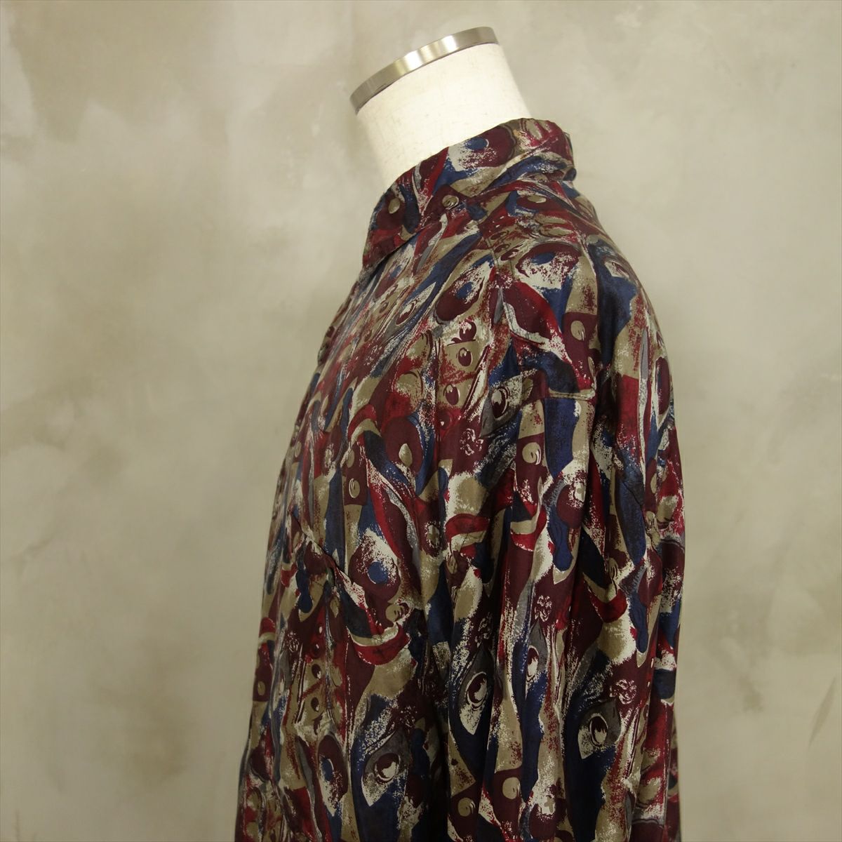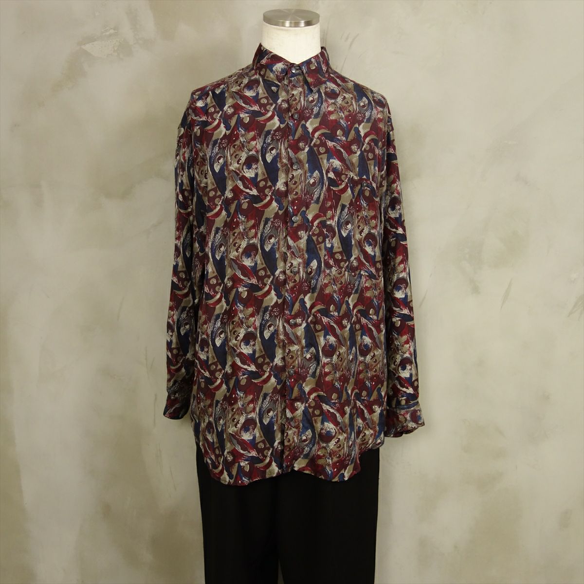 古着 総柄 シルク 長袖シャツ