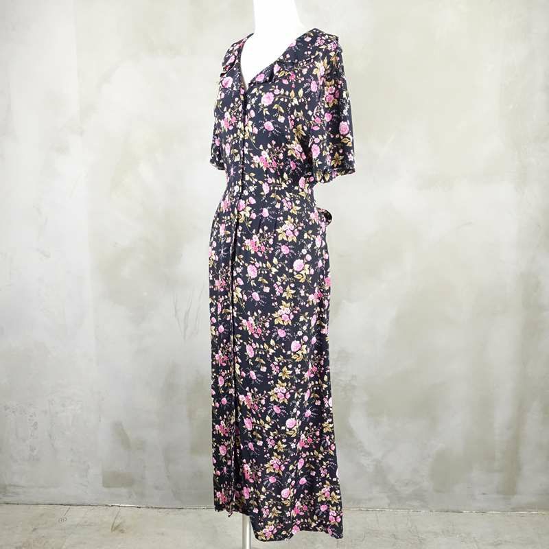 古着 花柄 開襟 Iライン 半袖ワンピース