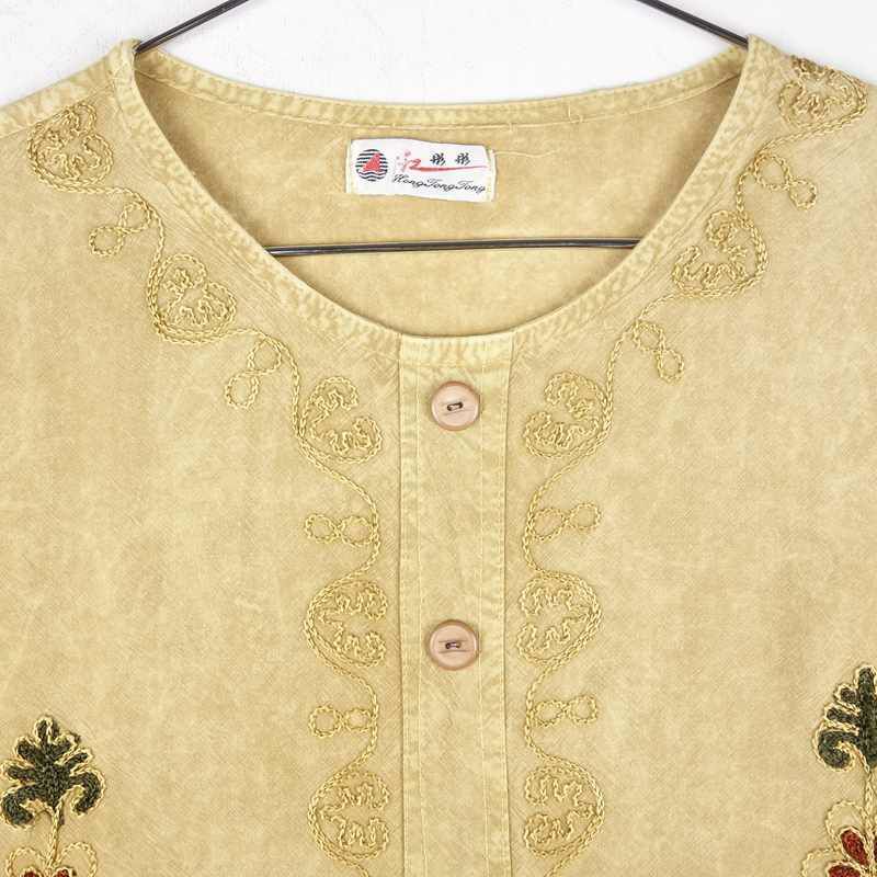 古着 ノーカラー エスニック 半袖シャツ