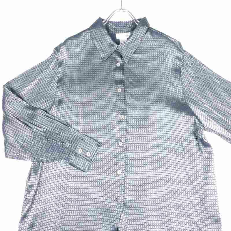 古着 長袖シャツ 小紋柄 レーヨン シャツ