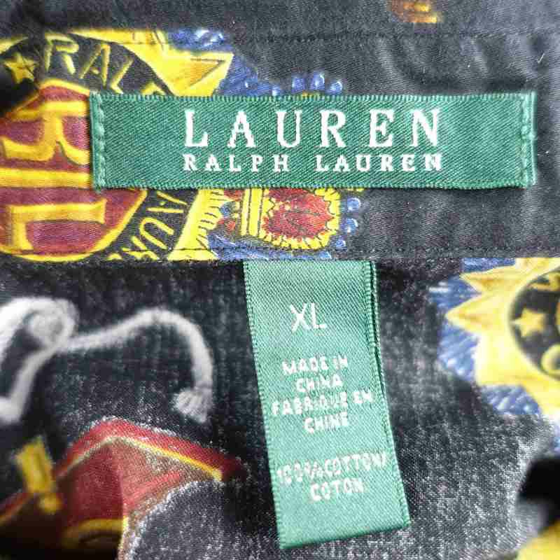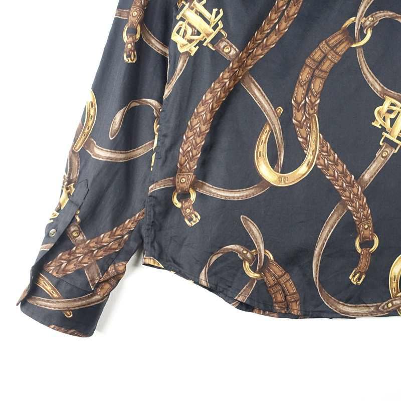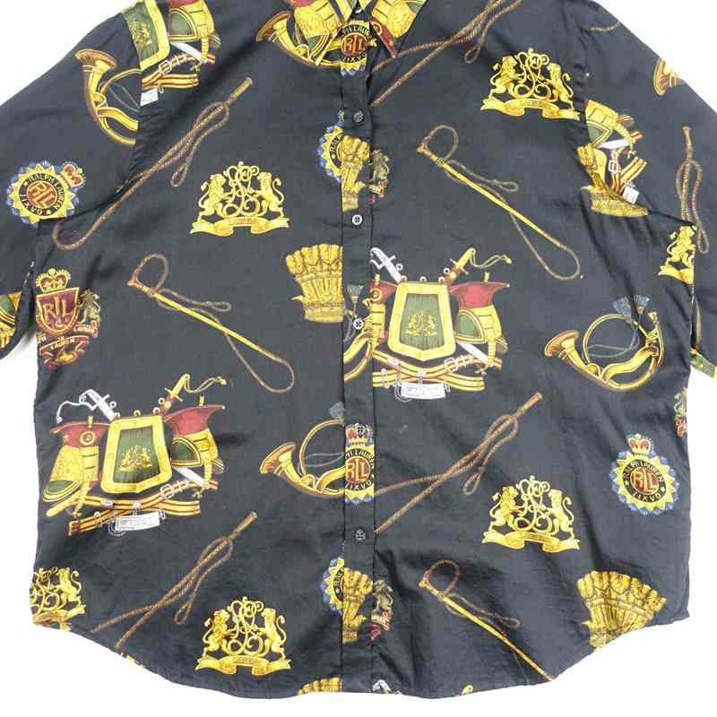 古着 Lauren 総柄 レーヨン 長袖シャツ