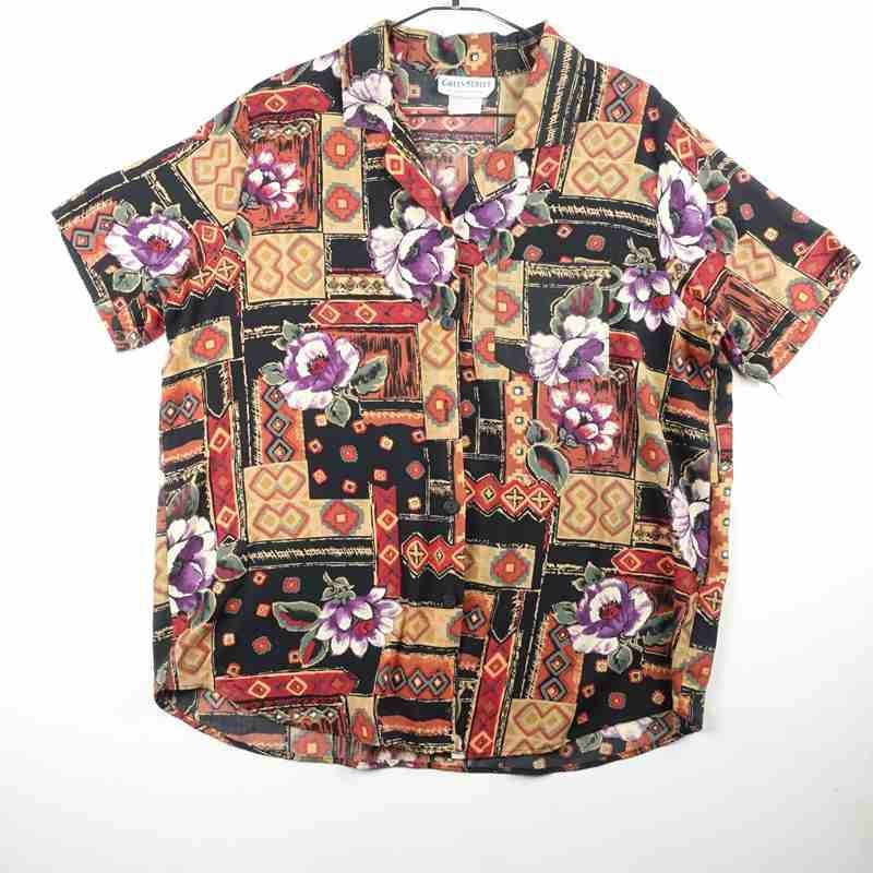 古着 花柄 オープンカラー 半袖シャツ