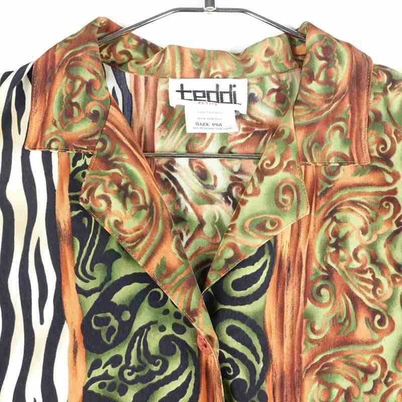 古着 開襟 幾何学柄 シルク 半袖シャツ