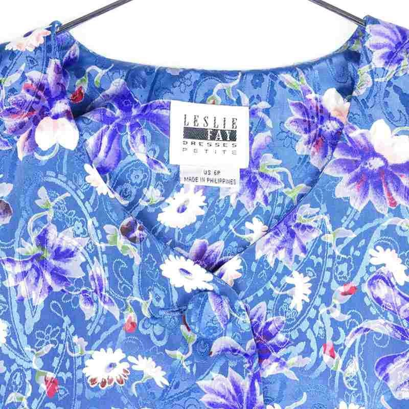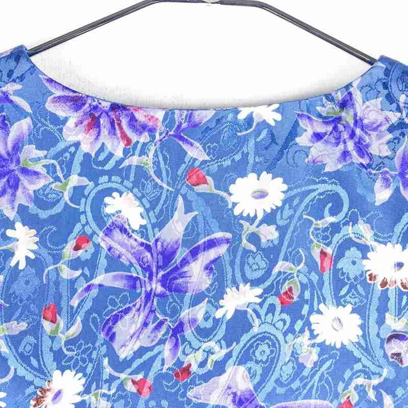 古着 花柄 ノーカラー 半袖シャツ