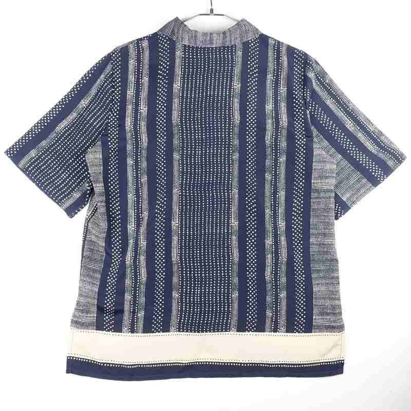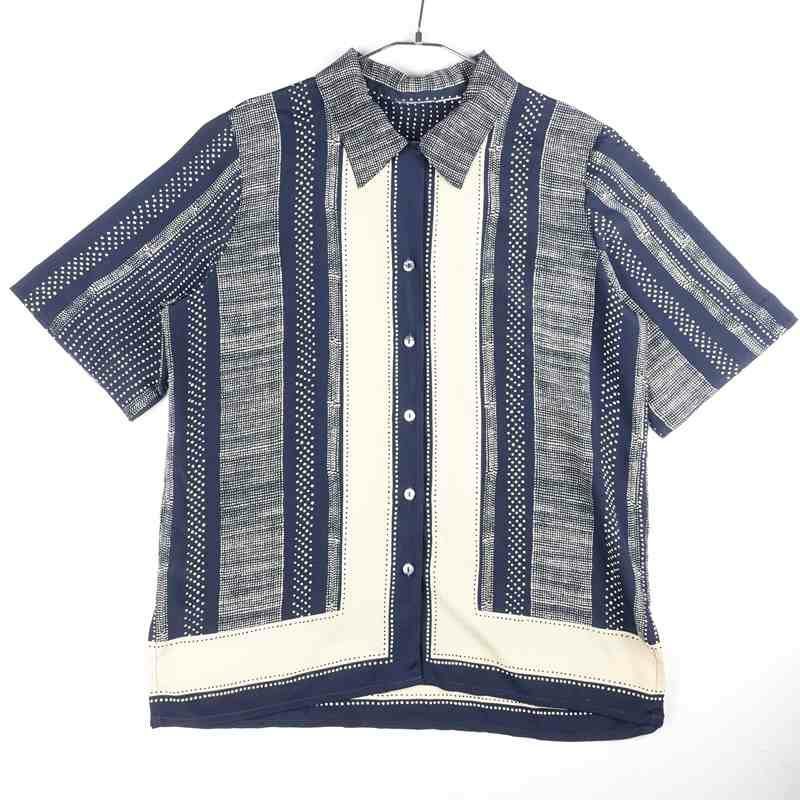 古着 総柄 ノーカラー 半袖シャツ
