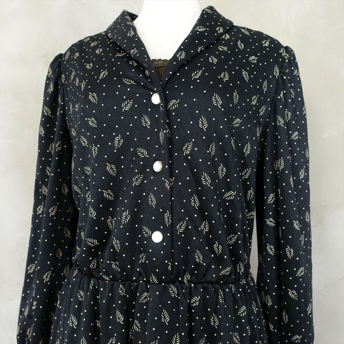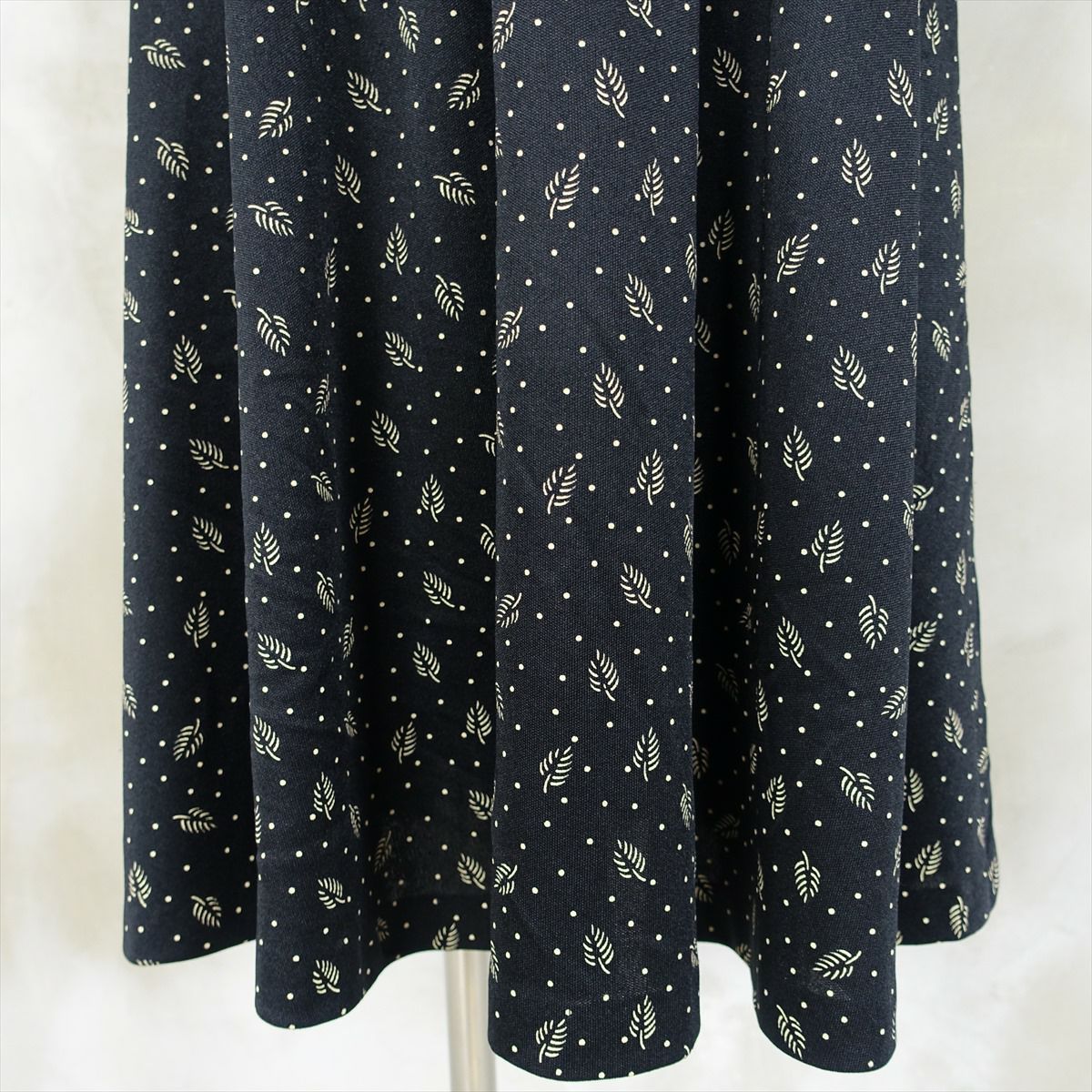 古着 ポリ ブラック リーフ柄 ワンピース