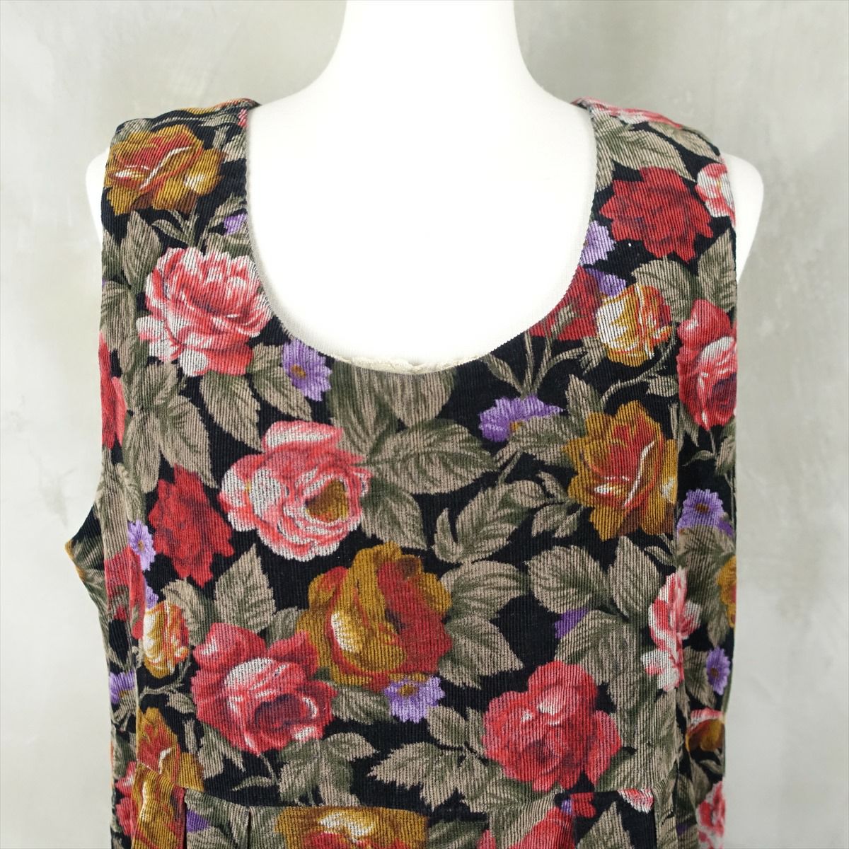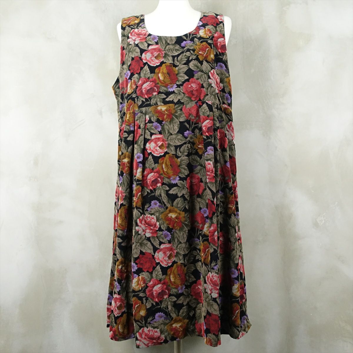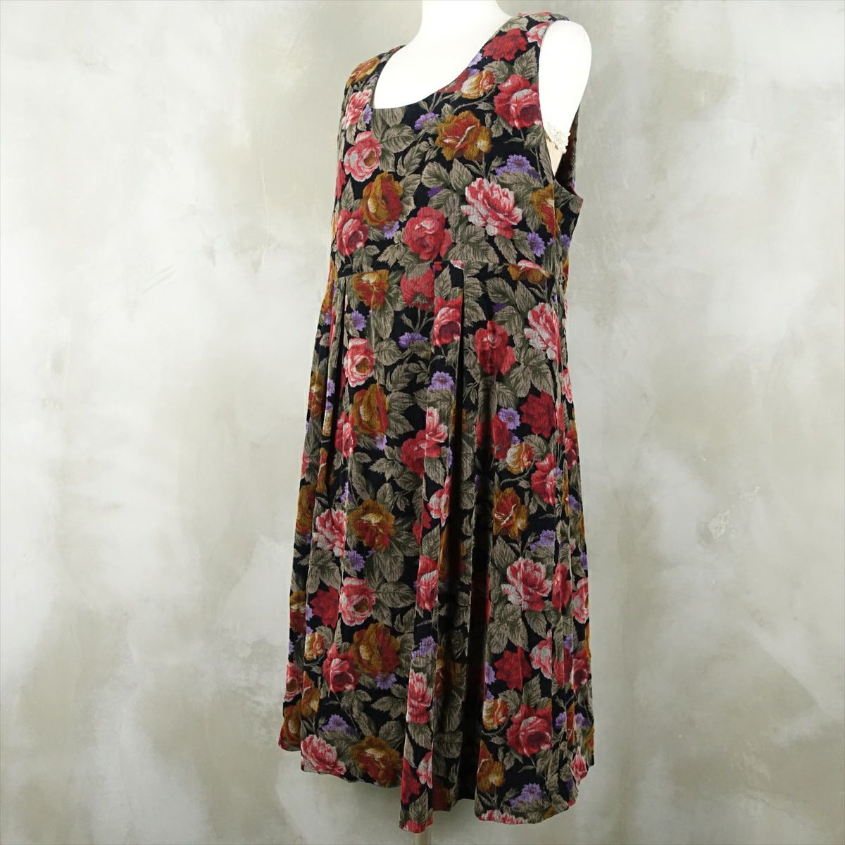 古着 花柄 コーデュロイ ノースリーブ ワンピース