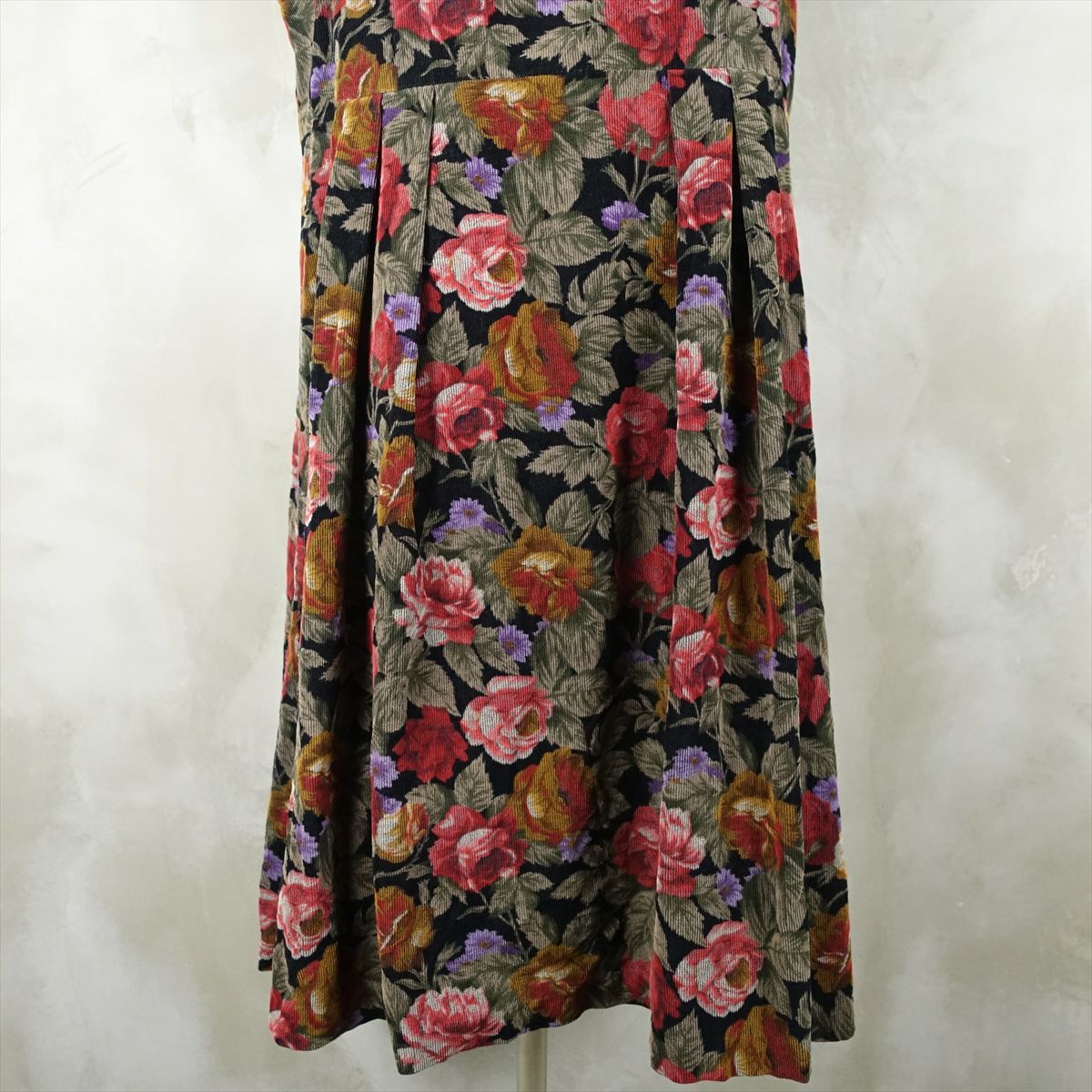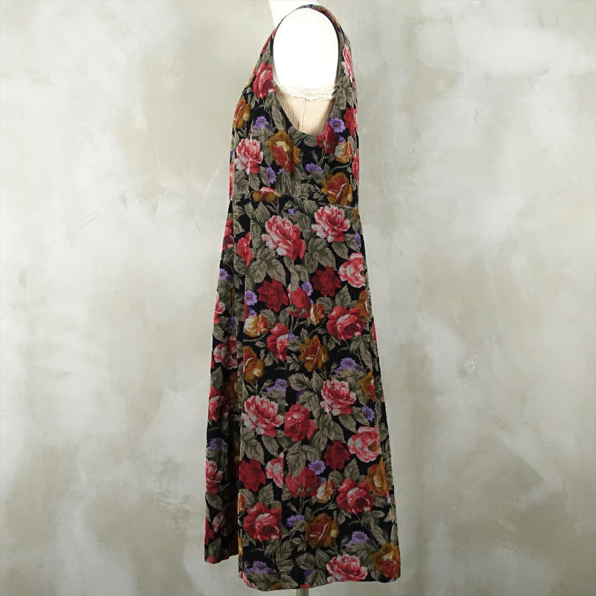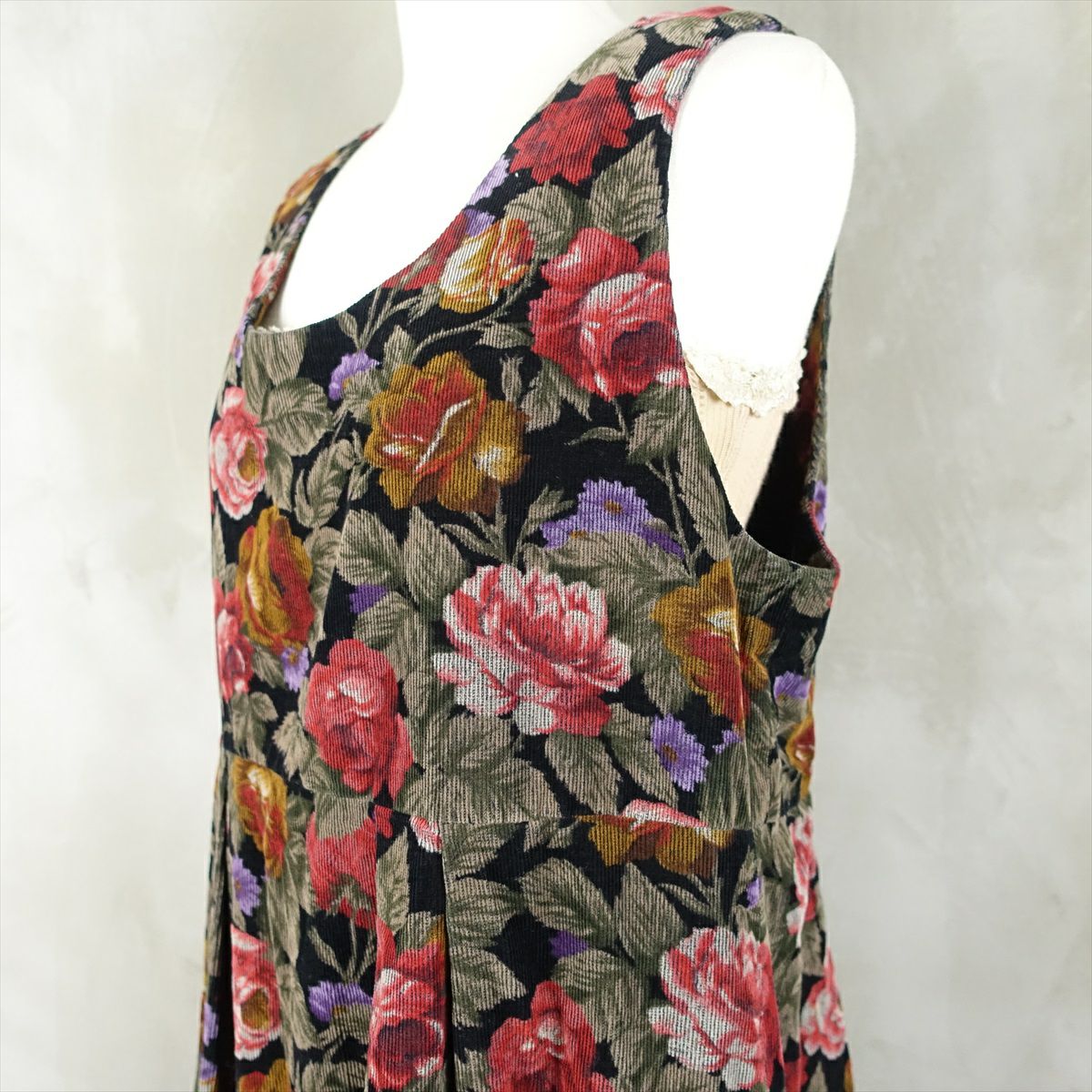 古着 花柄 コーデュロイ ノースリーブ ワンピース