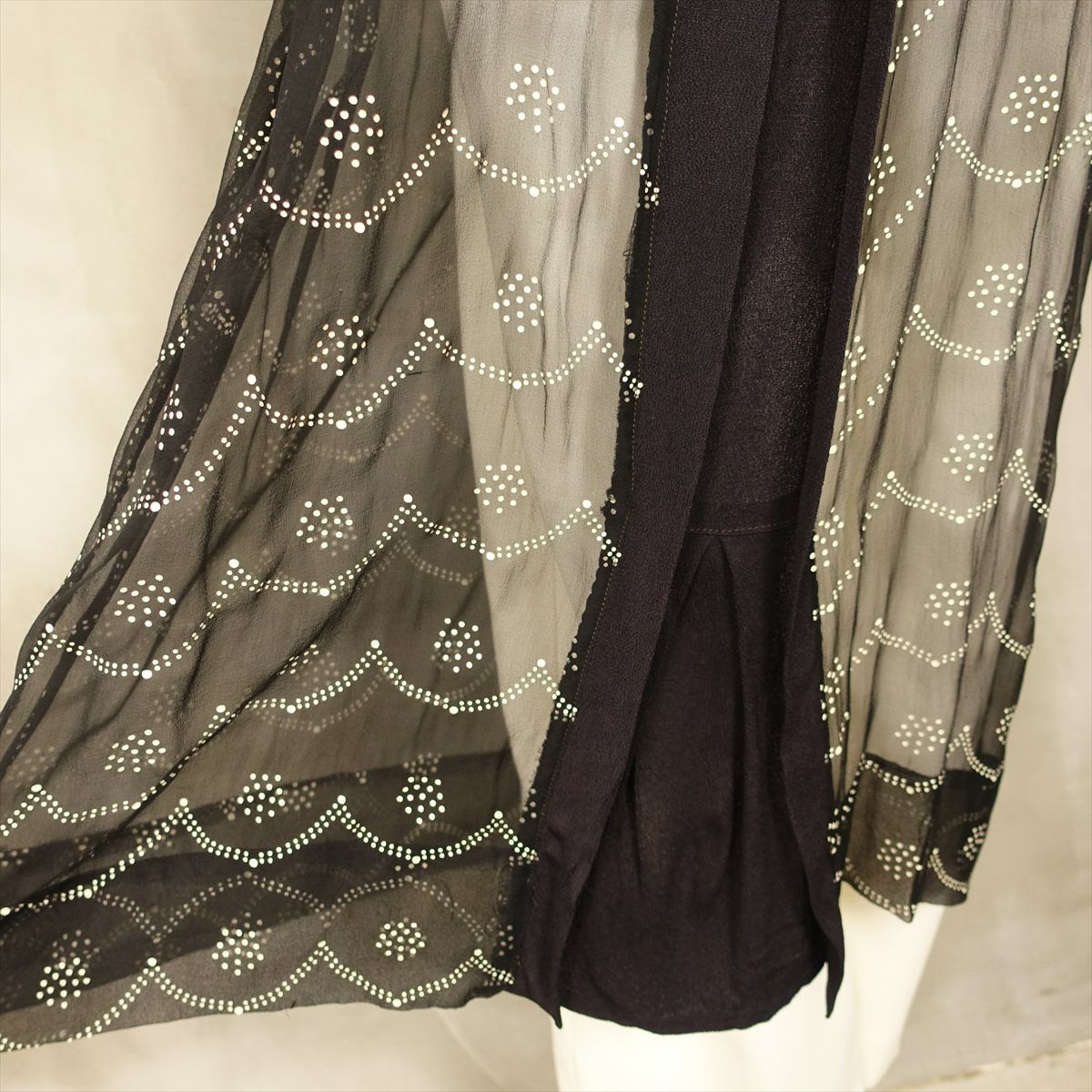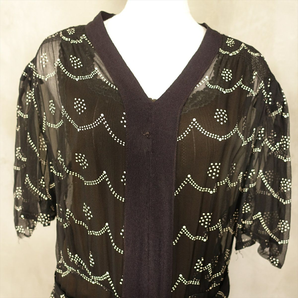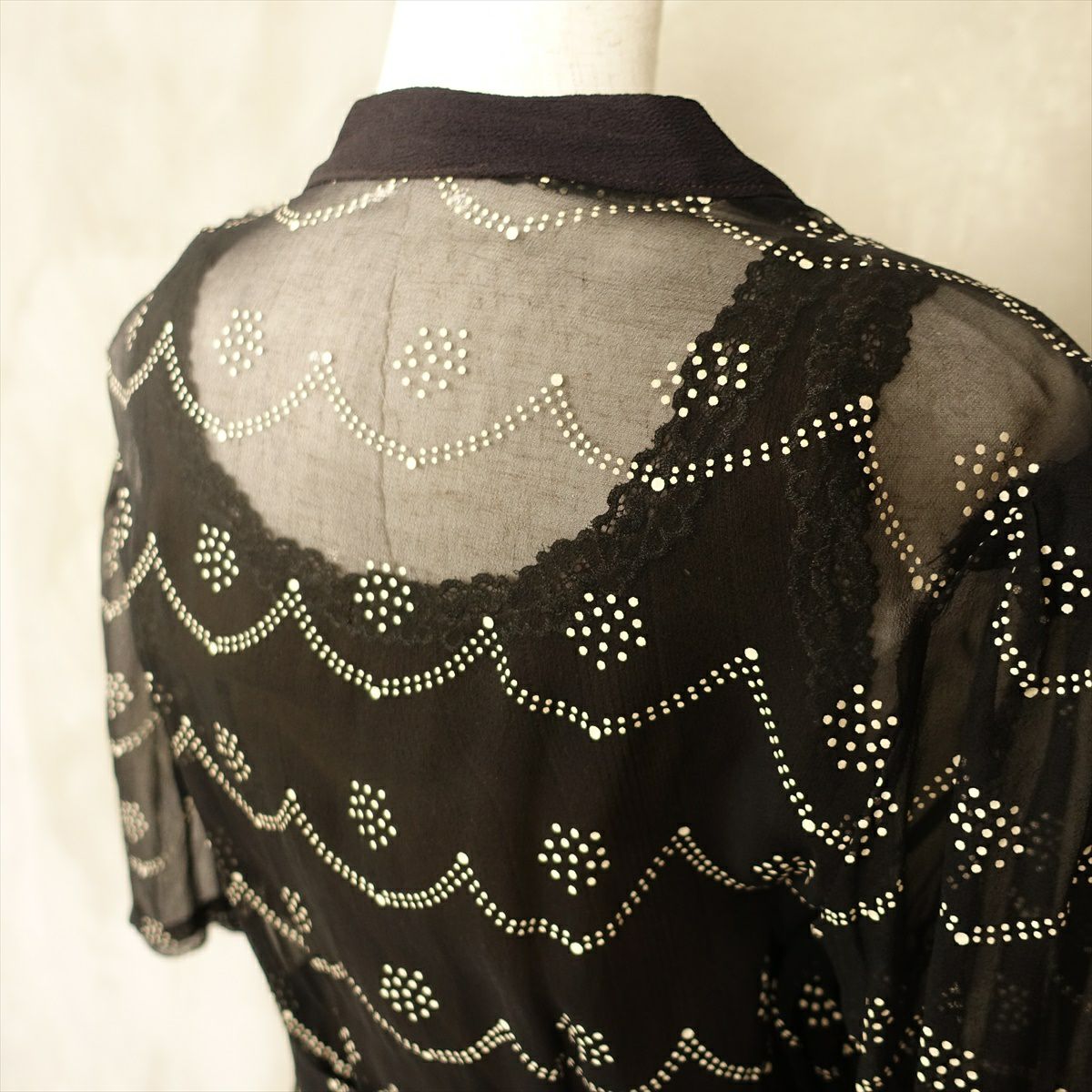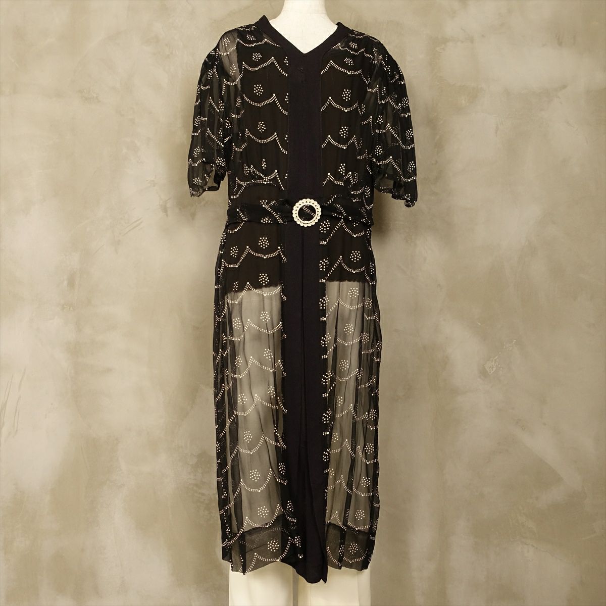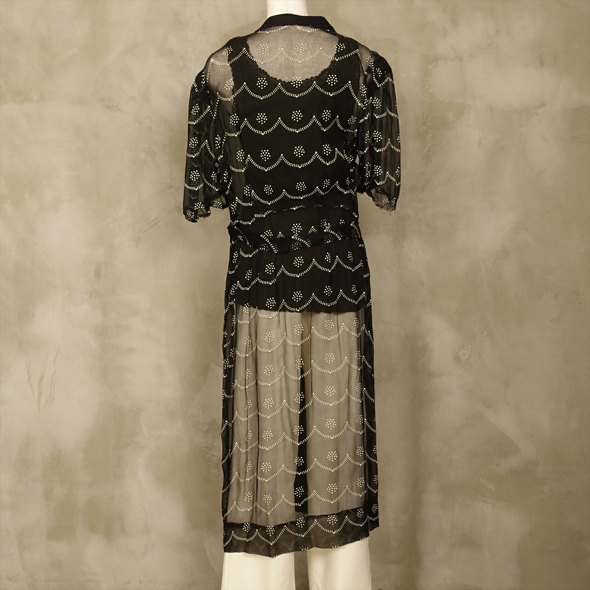 古着 総レース シースルー 長袖ワンピース