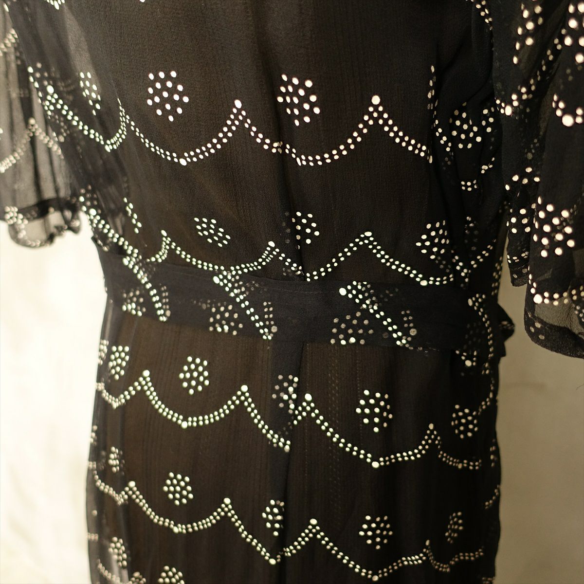古着 小紋柄 ベルト付き 長袖ワンピース