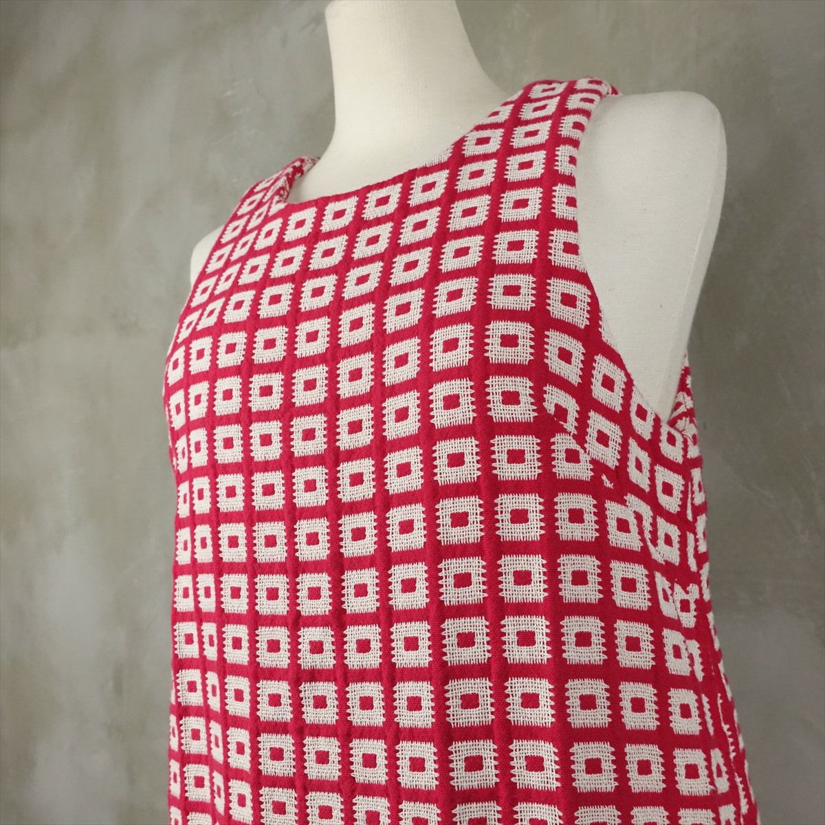 古着 幾何学柄 ノースリーブワンピース