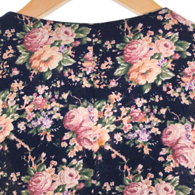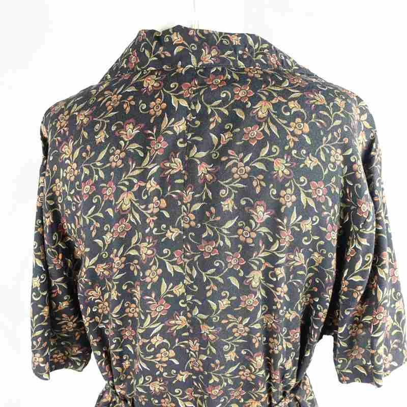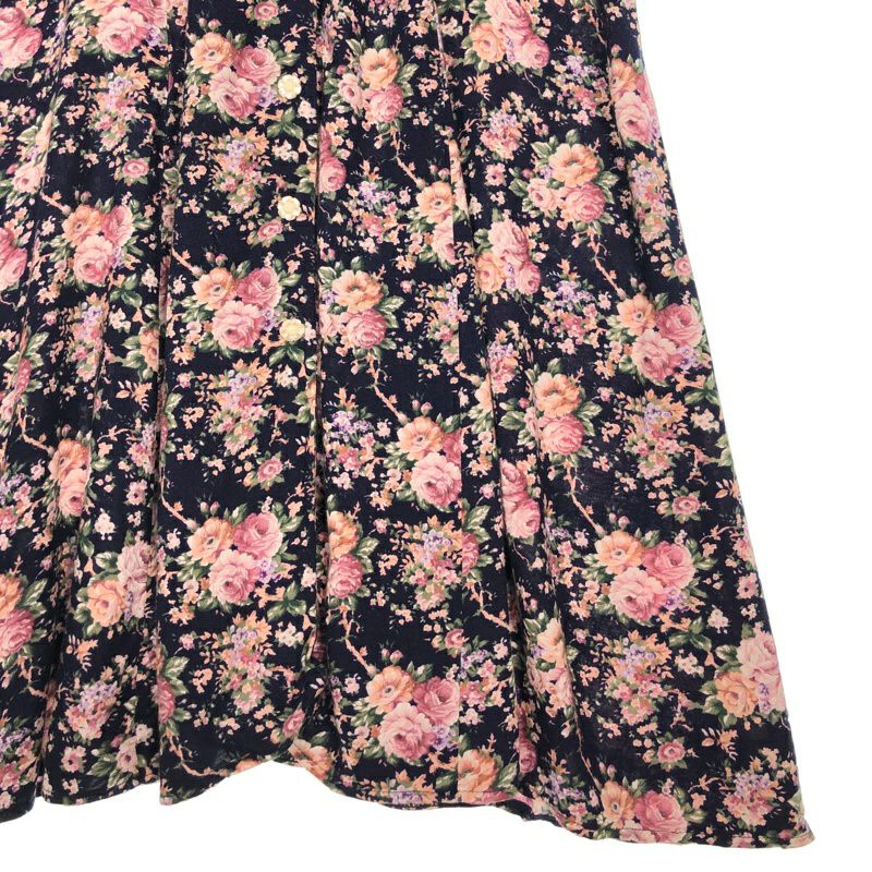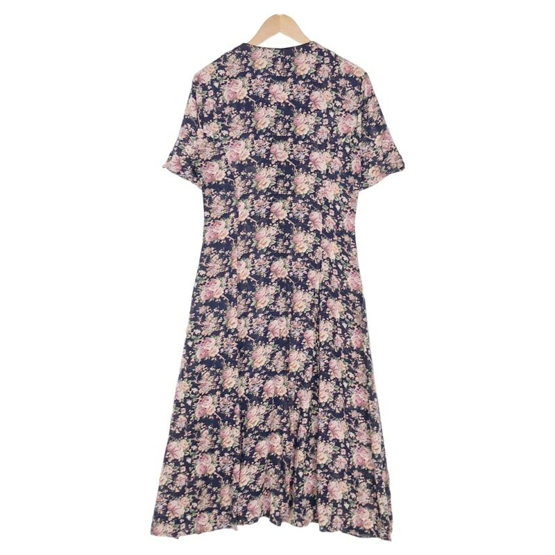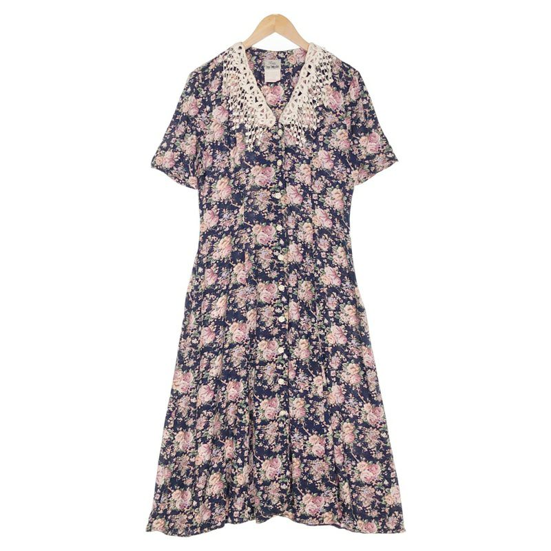 古着 花柄 開襟 Iライン 半袖ワンピース