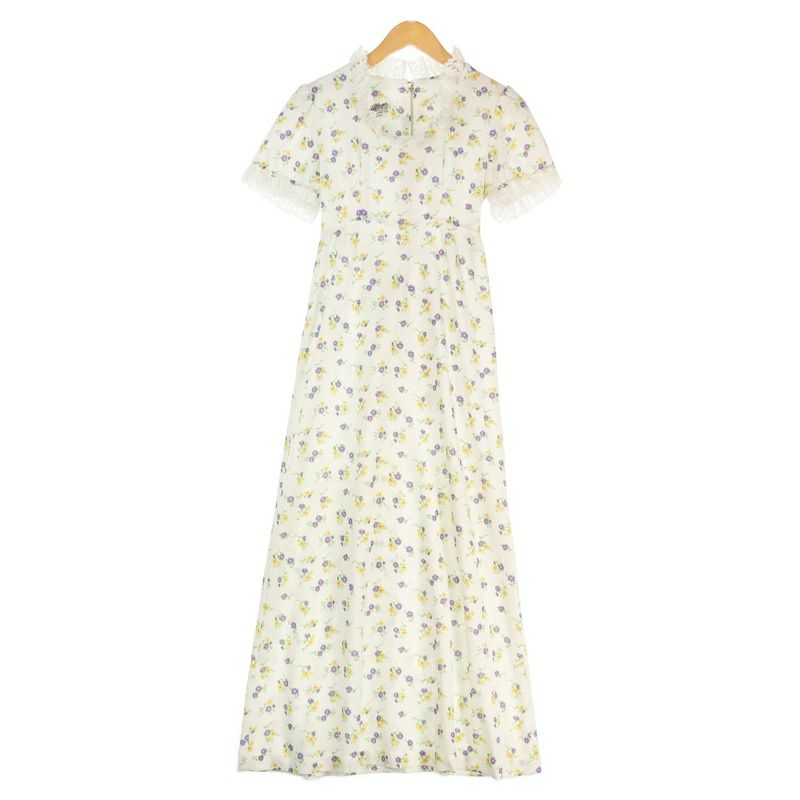 古着 Karin stevens レース襟付き 花柄 前開き ワンピース