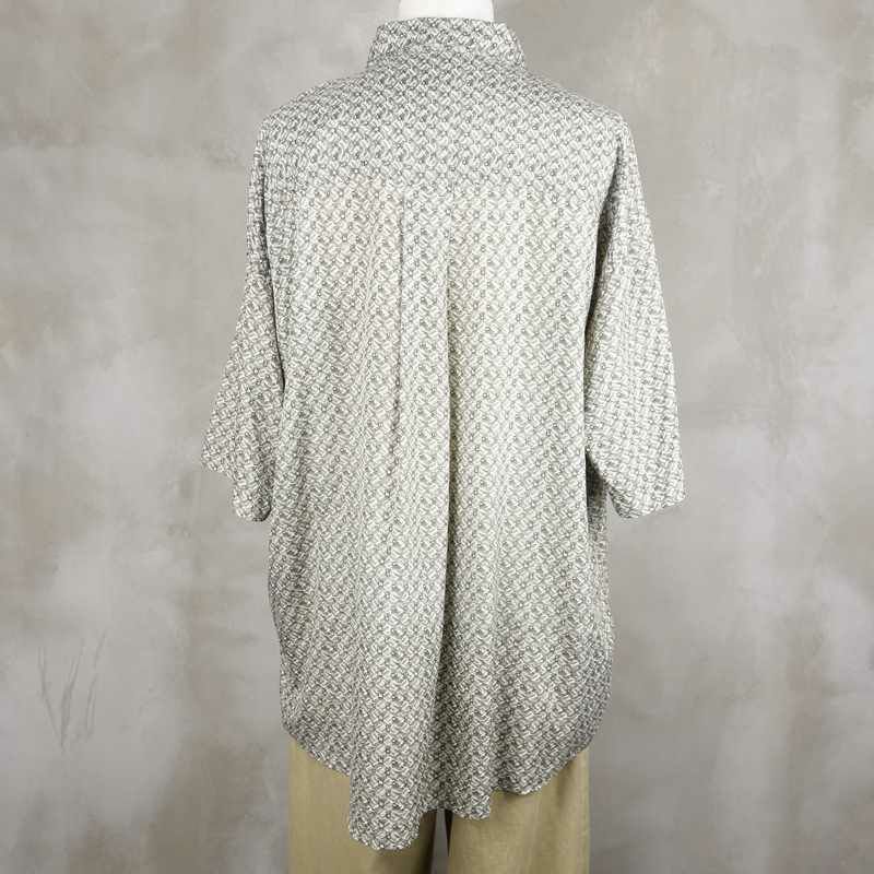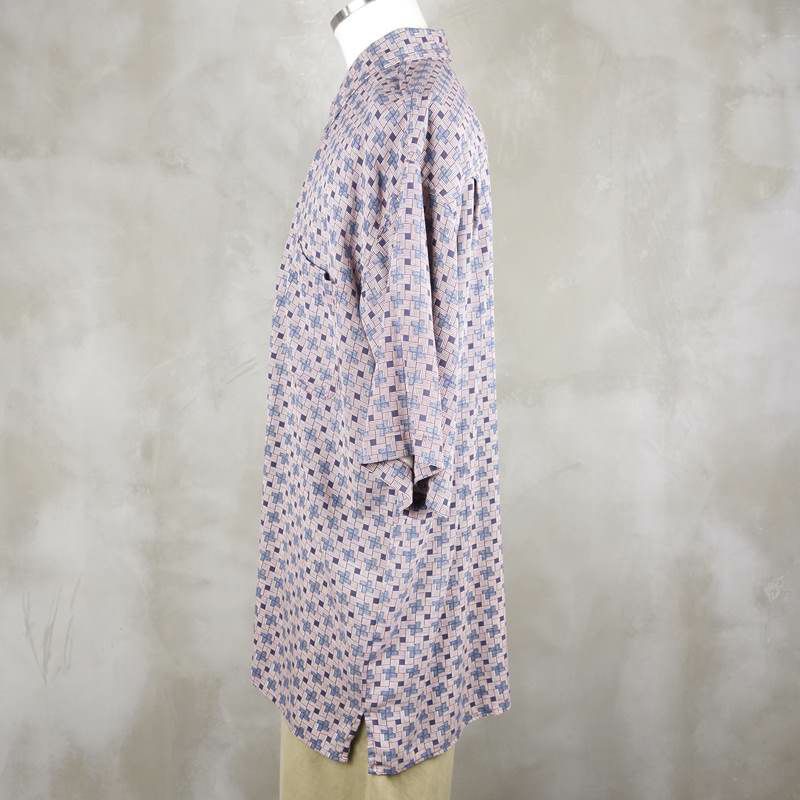 古着 総柄 ノーカラー 半袖シャツ