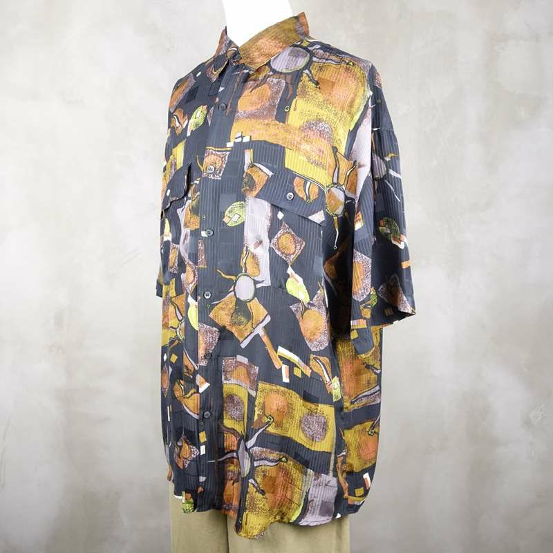 古着 アート柄 シルク 半袖シャツ