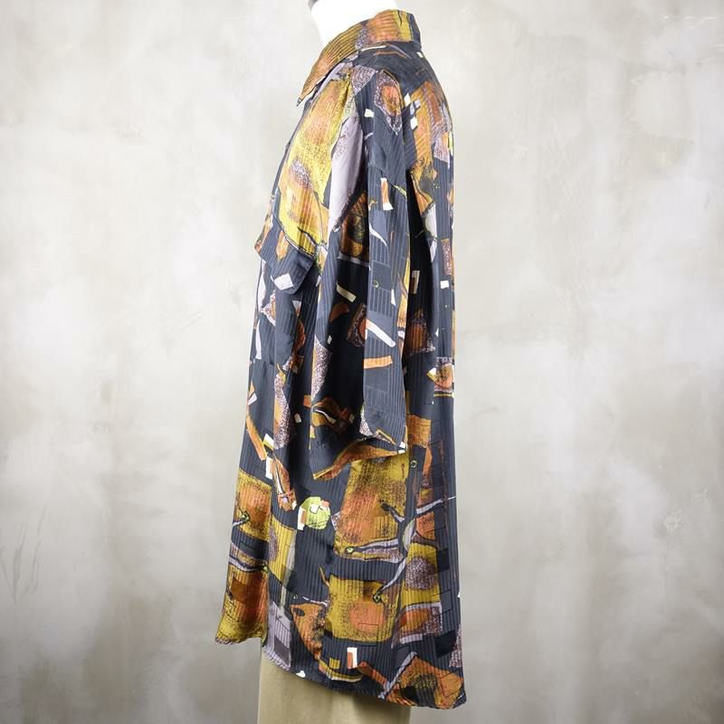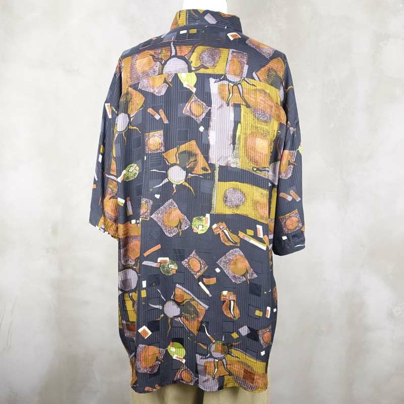 古着 アート風 シルク 半袖シャツ