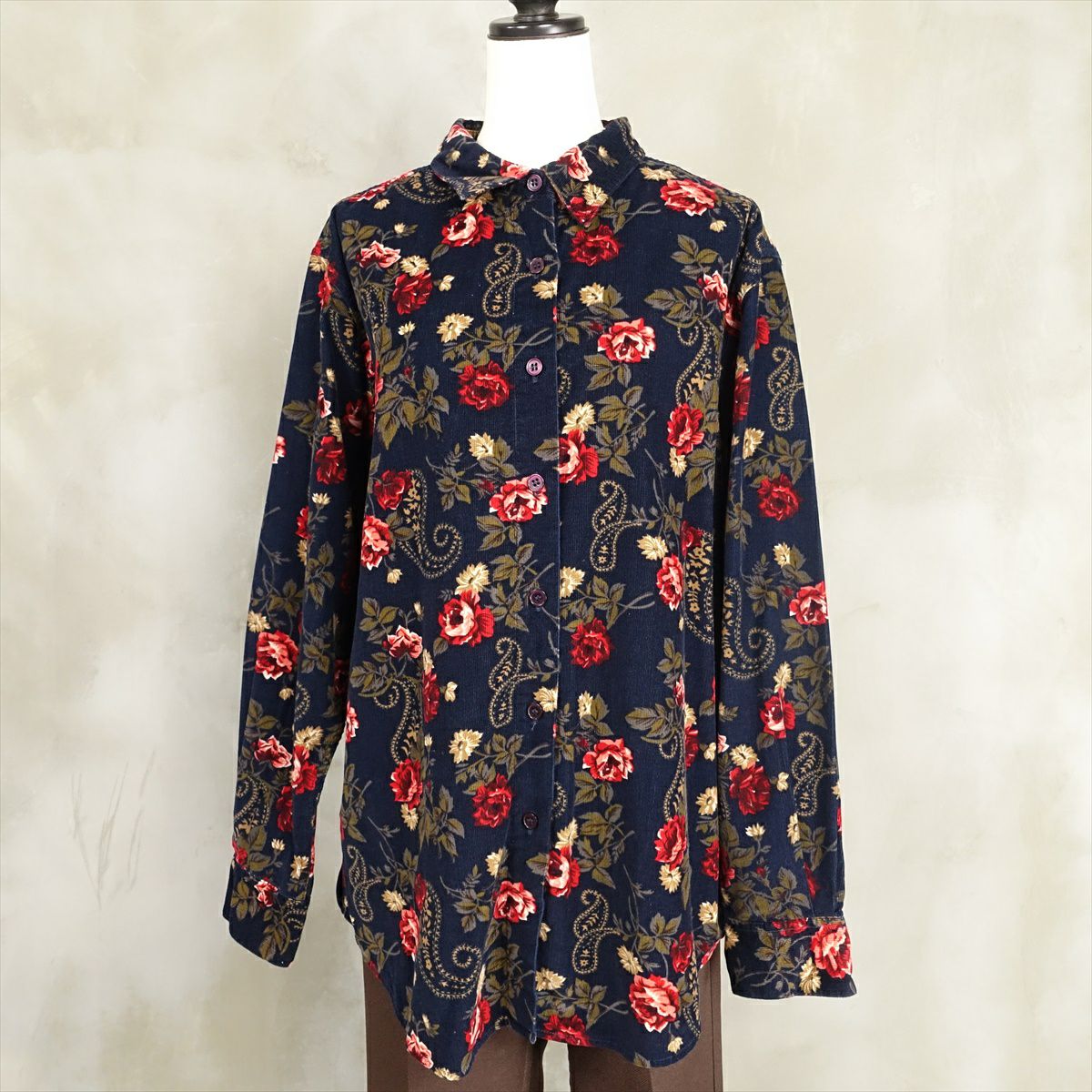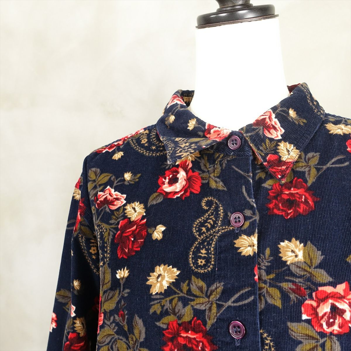 古着 Croft&Barrow 花柄 コーデュロイシャツ