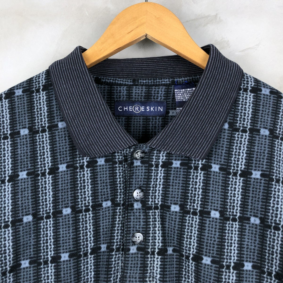 古着 CHERESKIN 総柄 長袖ポロシャツ