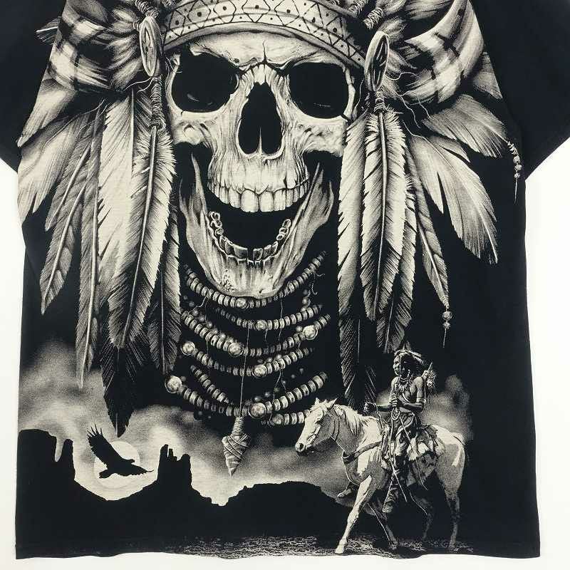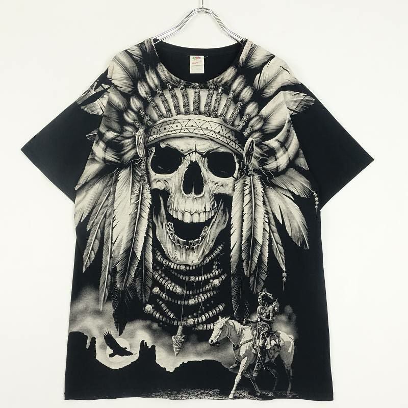 古着 90s スカル 総柄 プリント Tシャツ