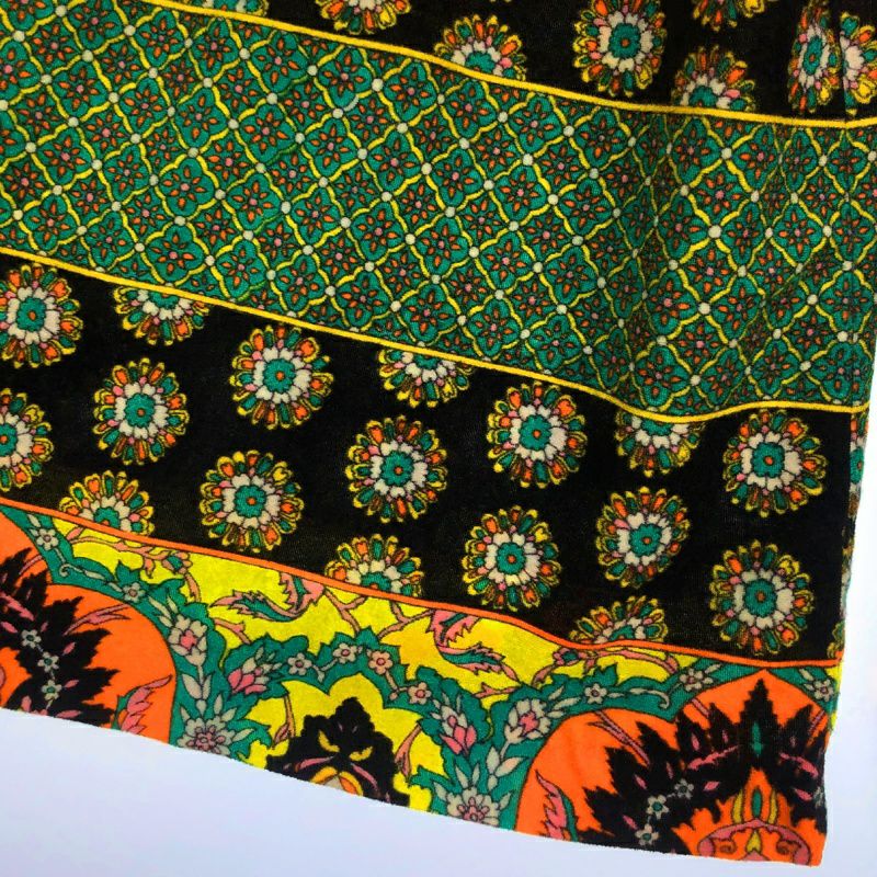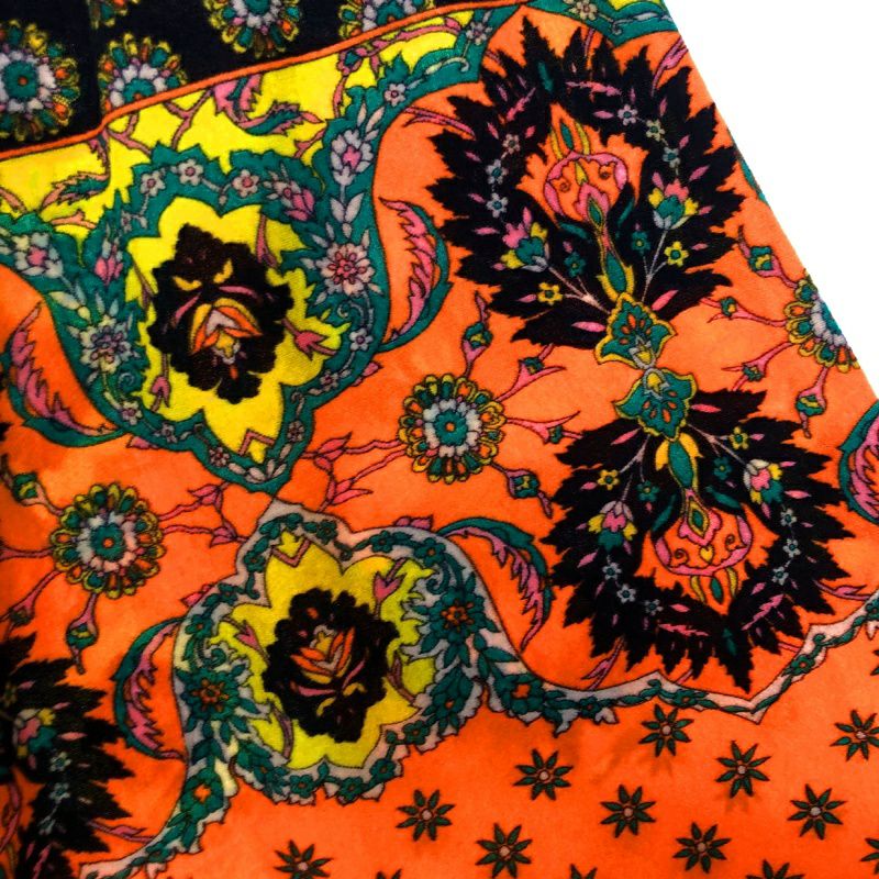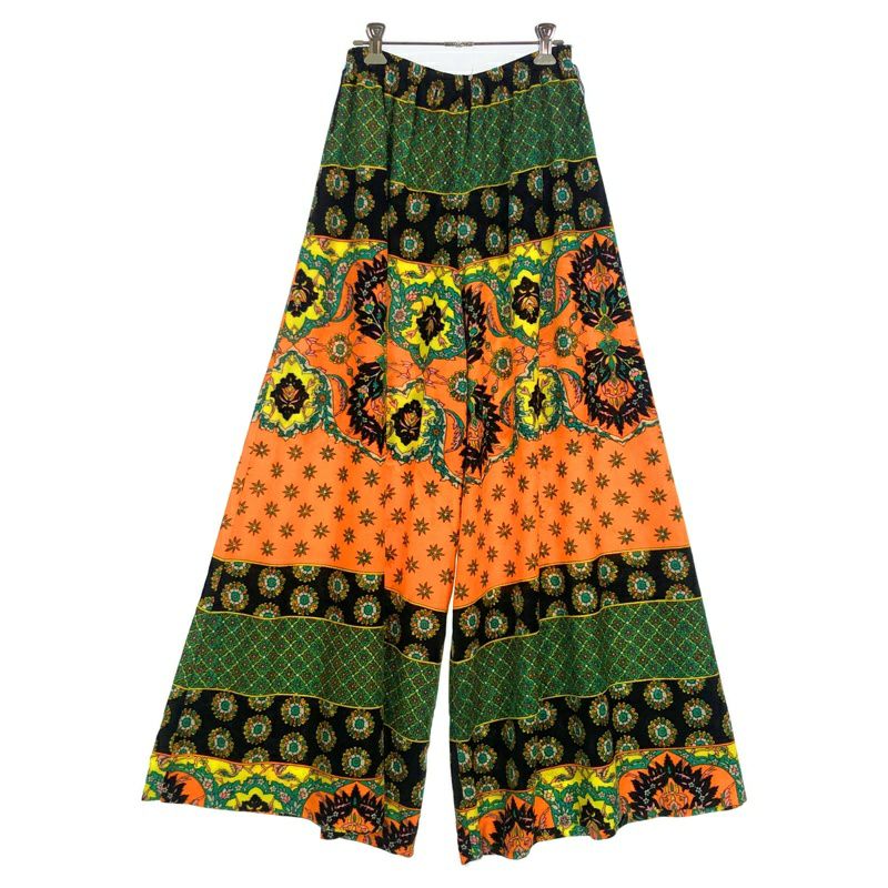 古着 70s ベロア風 総柄 ワイドパンツ