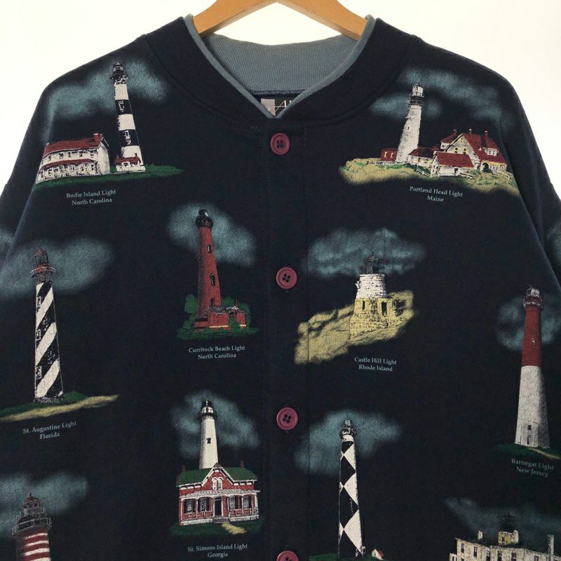 古着 USA製 総柄 スウェットカーディガン