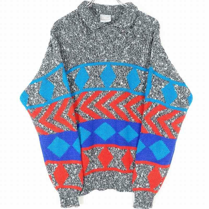 古着 80s アクリル 総柄ニット