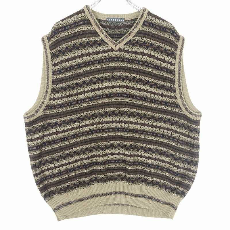古着 consensus ボーダー 総柄 ニットベスト