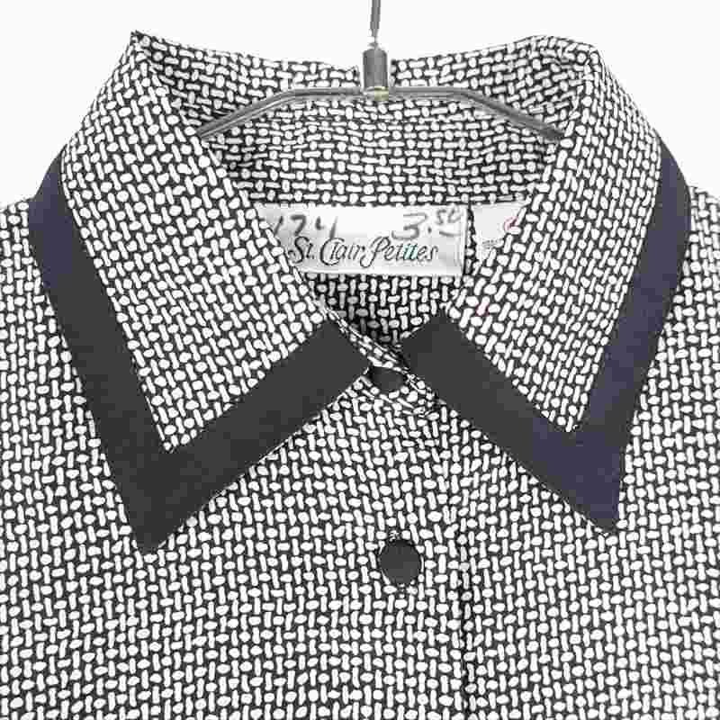 古着 Yves St Clair Petites 総柄 モノトーン 長袖シャツ
