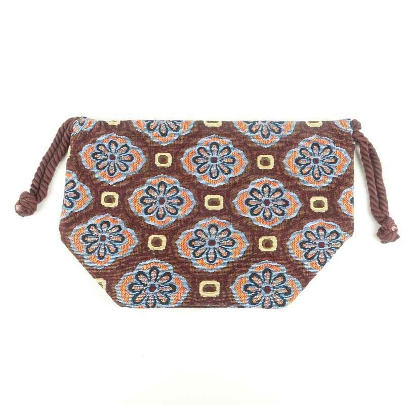 Fafatt ファファット 総柄 巾着バッグ フラワーパターン ブラウン