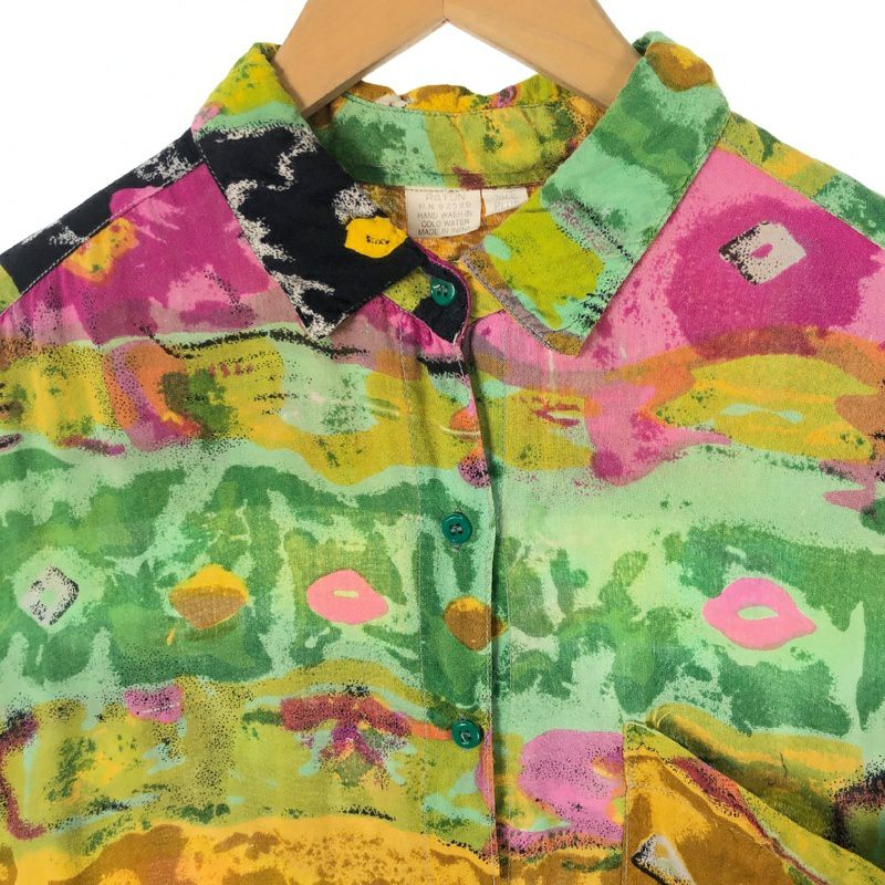 古着 レーヨン 水彩画風柄シャツ