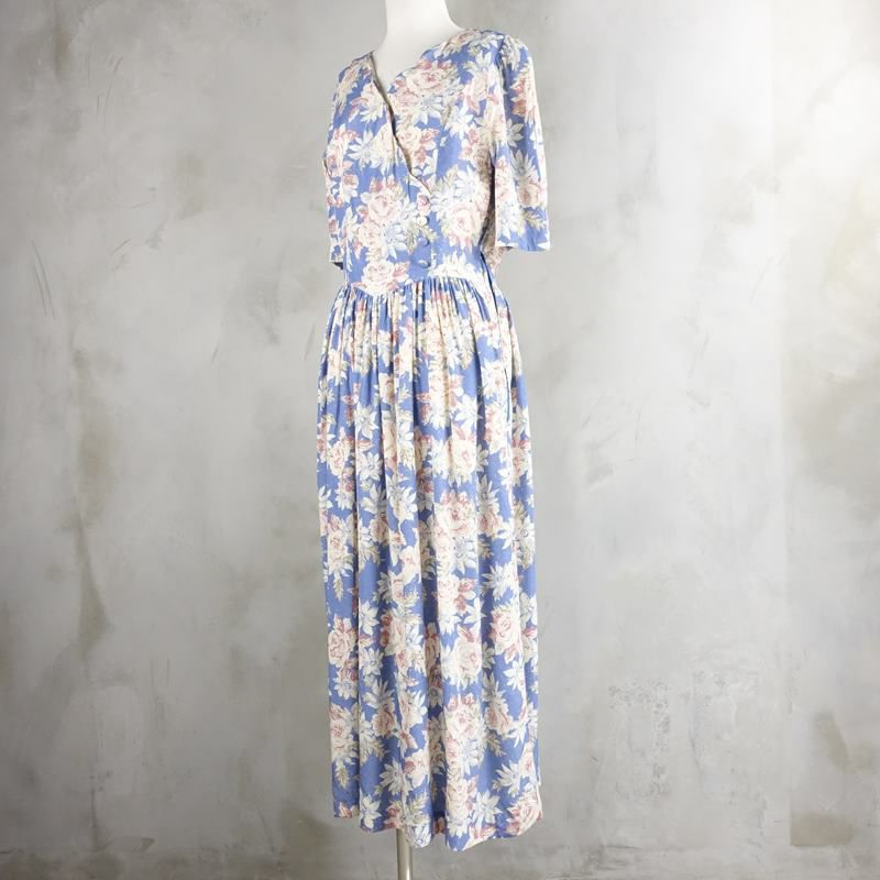 古着 ローラアシュレイ 花柄 半袖ワンピース