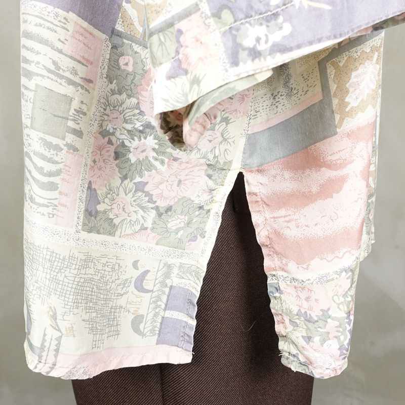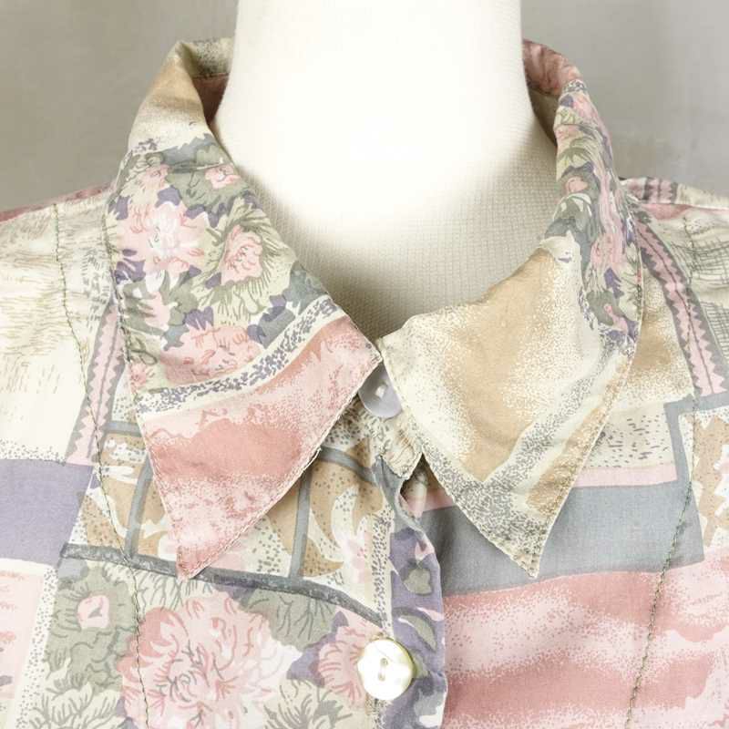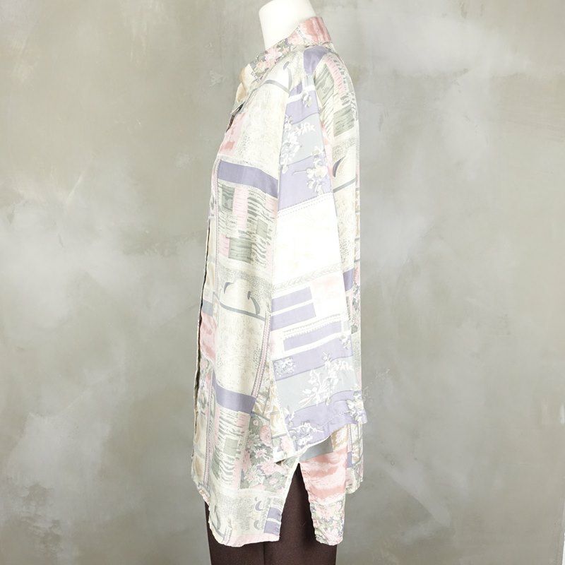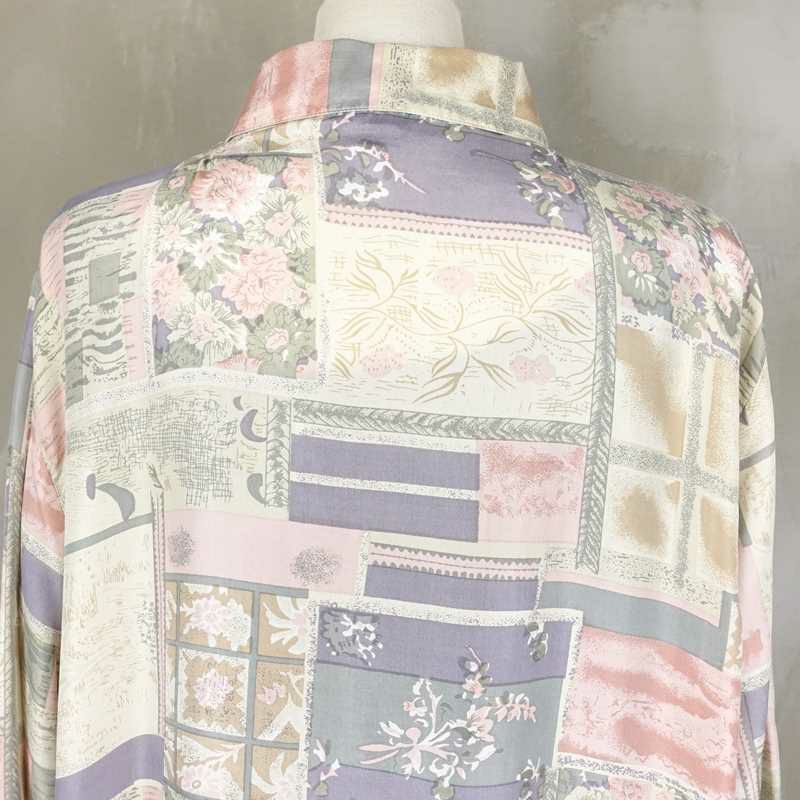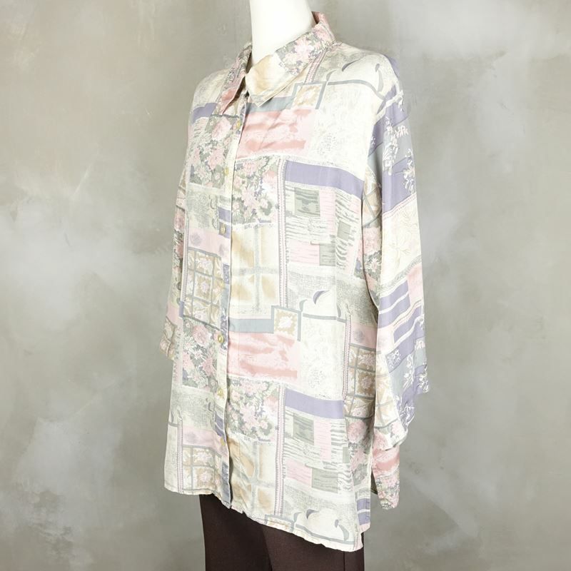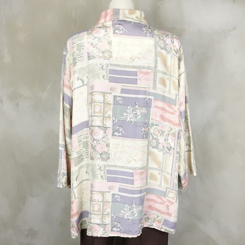 古着 花柄 シルク七部袖シャツ
