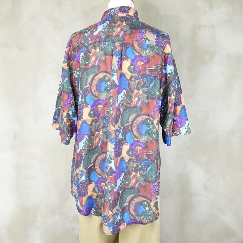 古着 水彩画風 シルク 半袖シャツ