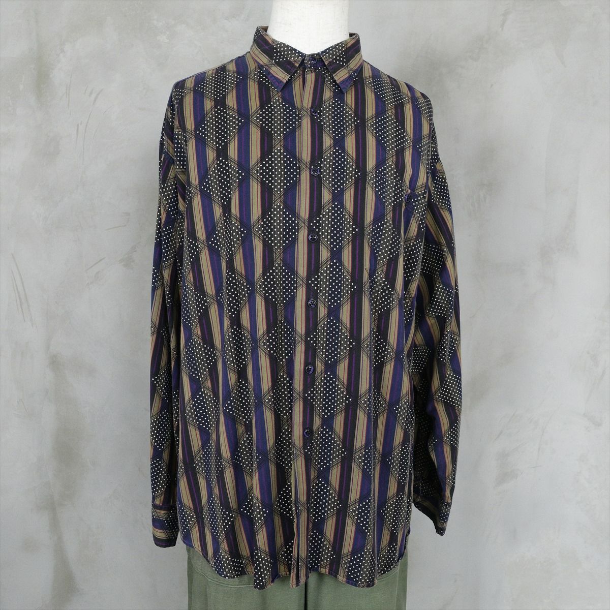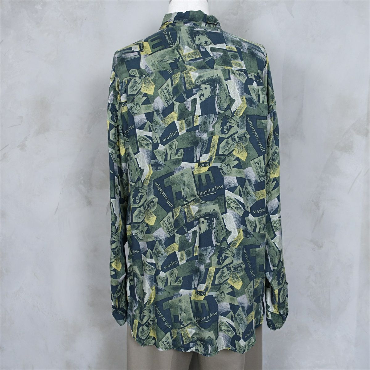 古着 総柄 レーヨン 長袖シャツ
