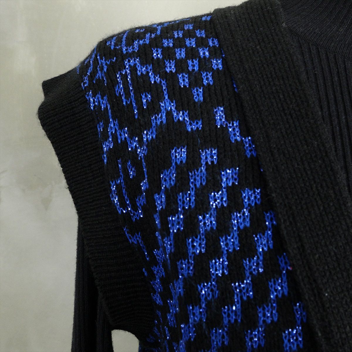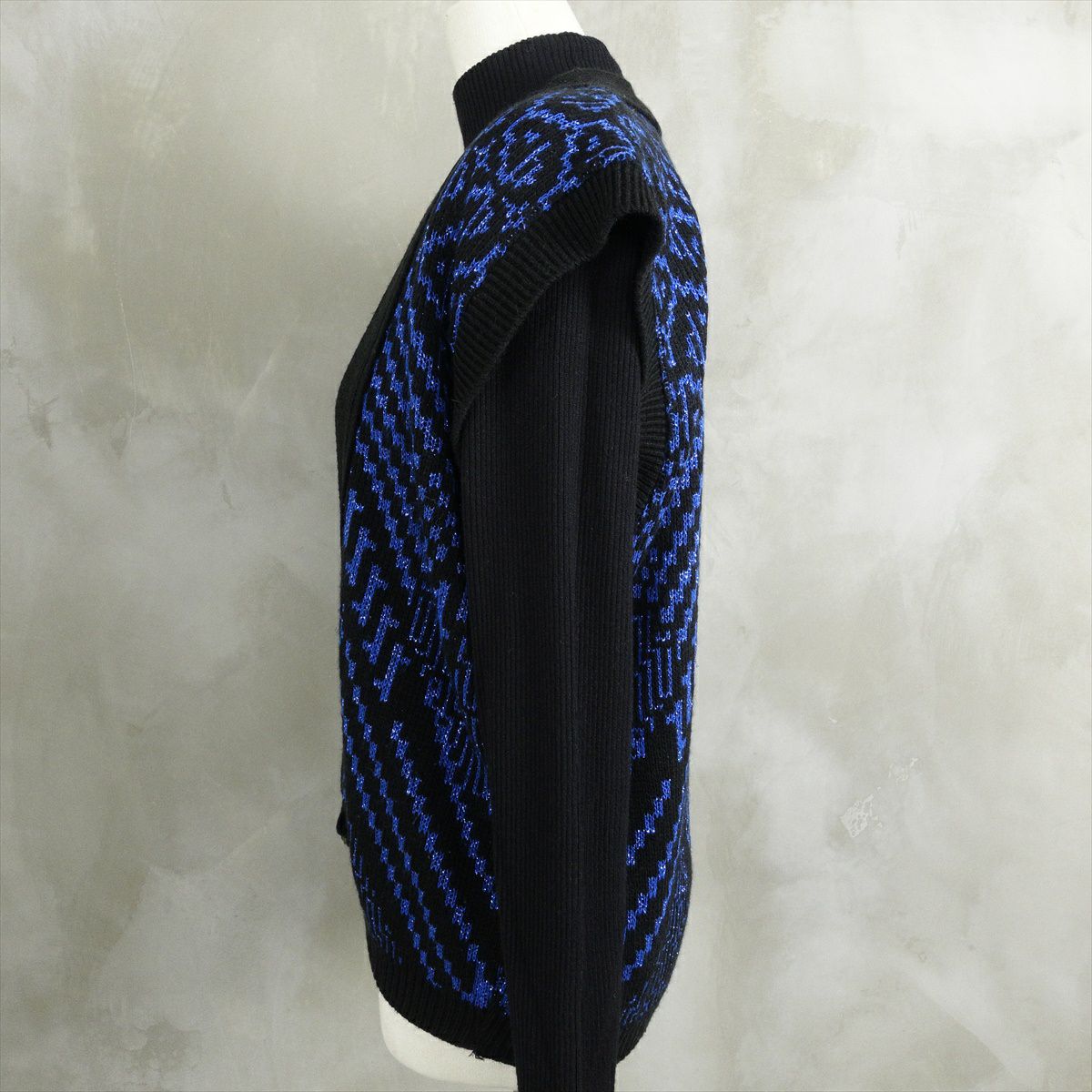 古着 総柄 開襟 ニットベスト