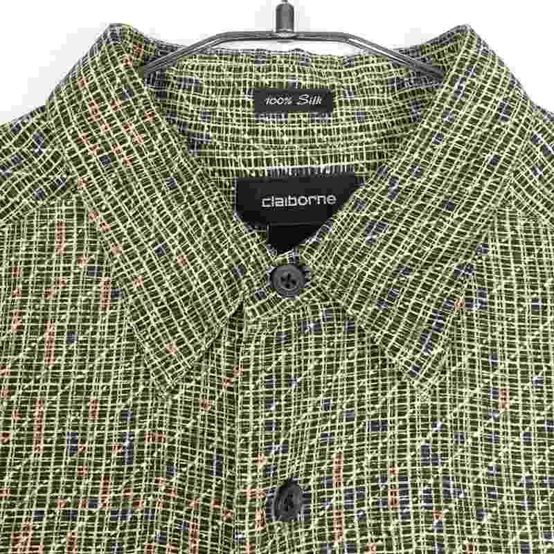 古着 総柄 シルク調 長袖シャツ