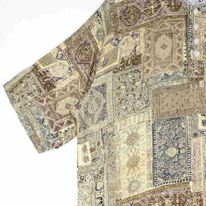 古着 総柄 ノーカラー 半袖シャツ