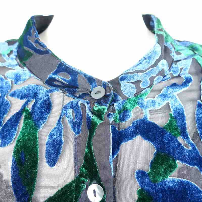 古着 ベロア シースルー ノーカラーシャツ