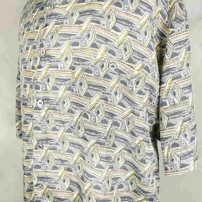 古着 総柄 シルク 半袖シャツ