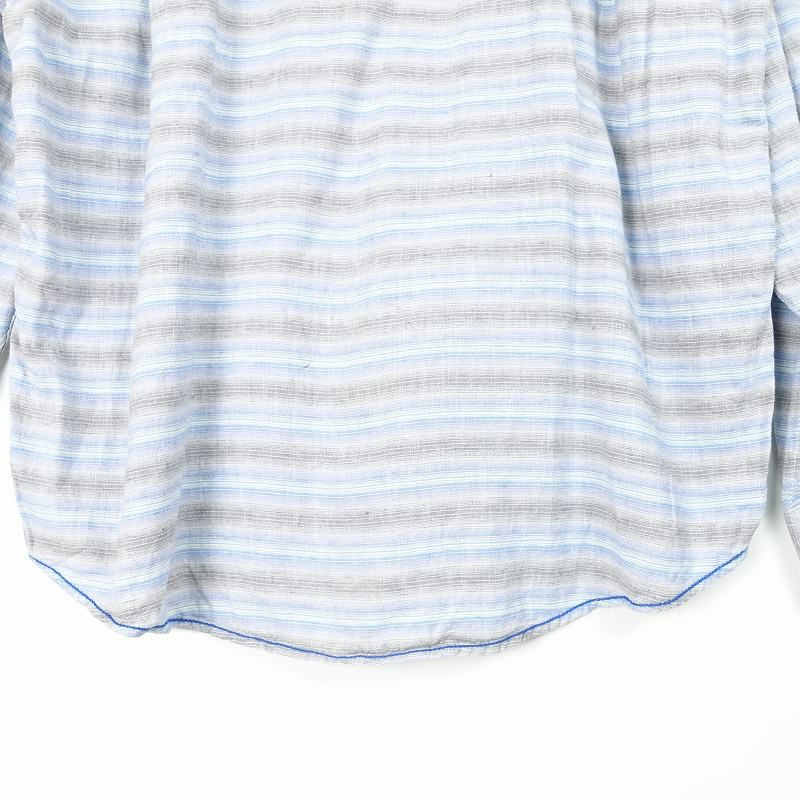 古着 ボーダー ノーカラー 長袖シャツ