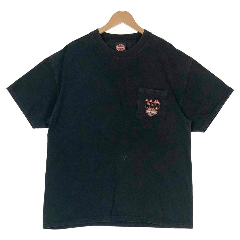 古着 USA製 HARLEY-DAVIDSON ポケット付 ロゴ プリントTシャツ