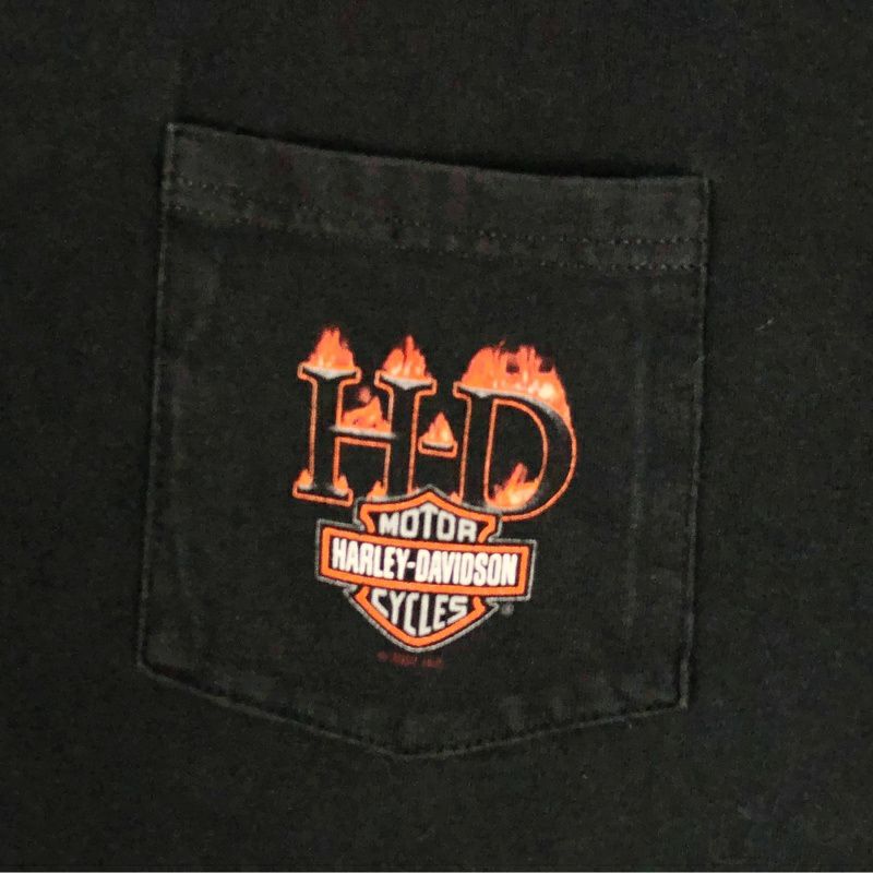 古着 90s USA製 HARLEY-DAVIDSON 胸ポケ プリント Tシャツ