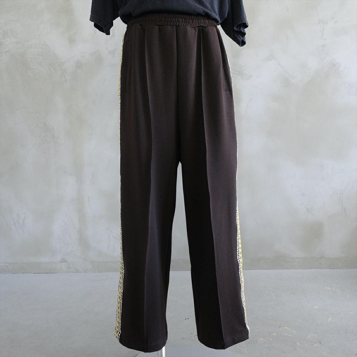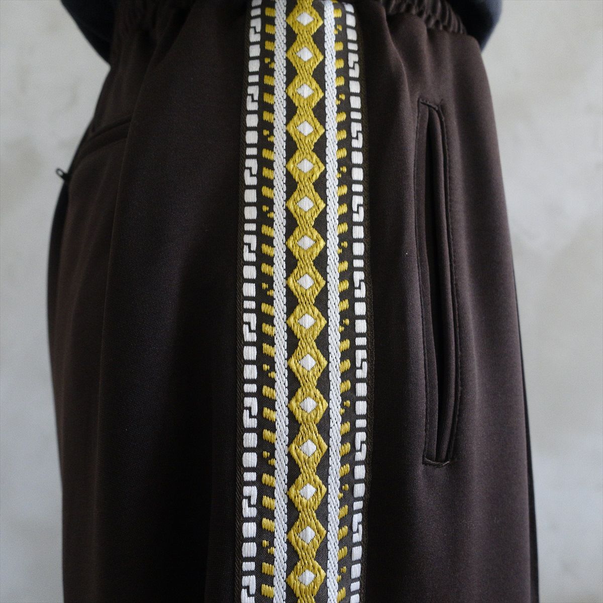 他の画像を見る fafatt ファファット サイドライン ジャージパンツ ブラウン FAFATT 販売価格 ¥ 7,480 税込 民族刺繍をモチーフにしたラインが入っているジャージパンツです。 古着ではあまり見かけないブラウンカラーで、センタープレスが入っているのでカジュアルになり過ぎずに履いて頂けます。 足元にレザーシューズやローファーを合わせると今っぽいコーディネートになるのでおすすめです。 トップスにはテーラードジャケットや、ミリタリーのアイテムなどを合わせると硬くなり過ぎないスタイリングにできます。 カートに入れる お気に入りに登録する